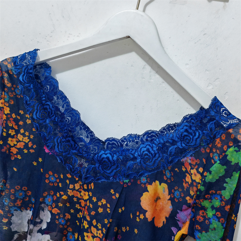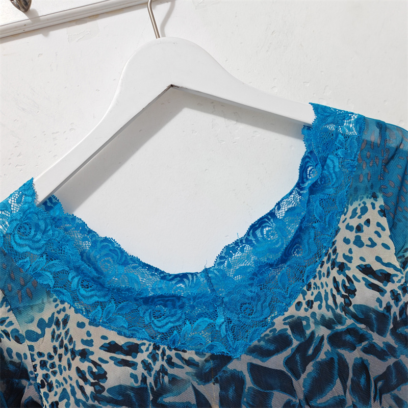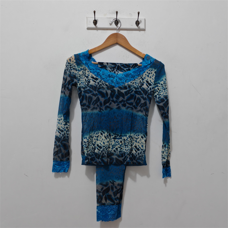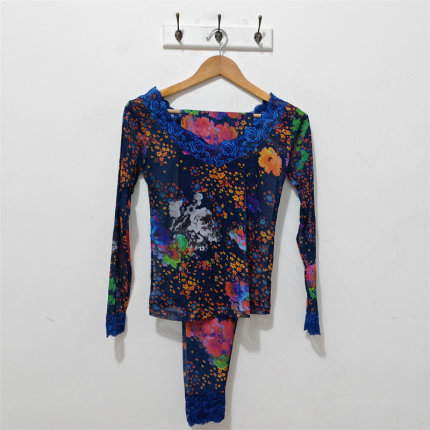 L-XL特价清仓 芬腾家居服 女士春秋幻彩网纱半透性感打底睡衣套装