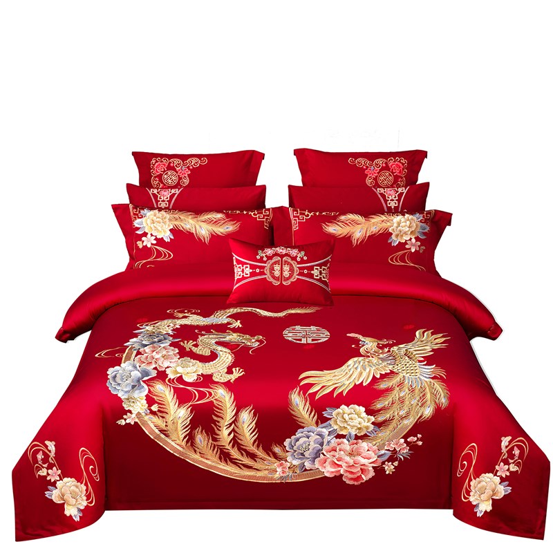 中式婚礼100支婚庆四件套 大红绣花全棉结婚床上用品被套床单