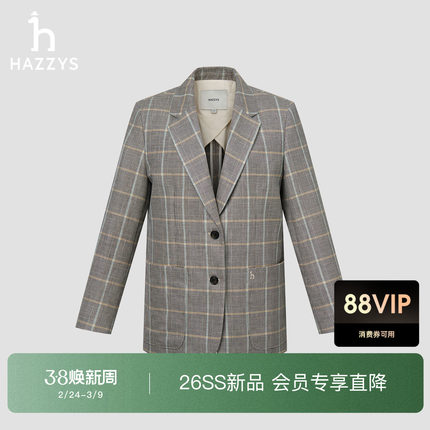 【商场同款】Hazzys哈吉斯宽松格纹单西女士2026年新款西装外套