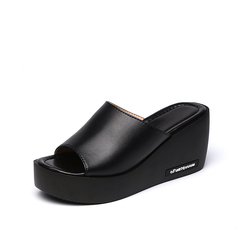 薏尔康拖鞋女夏季2026新款真皮高跟百搭坡外穿跟厚底休闲女凉拖鞋