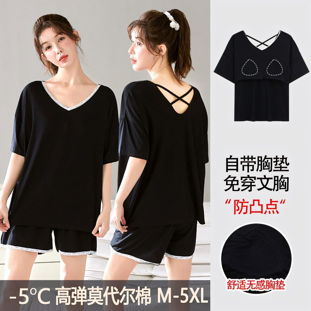 帕兰朵带胸垫莫代尔睡衣女款短袖