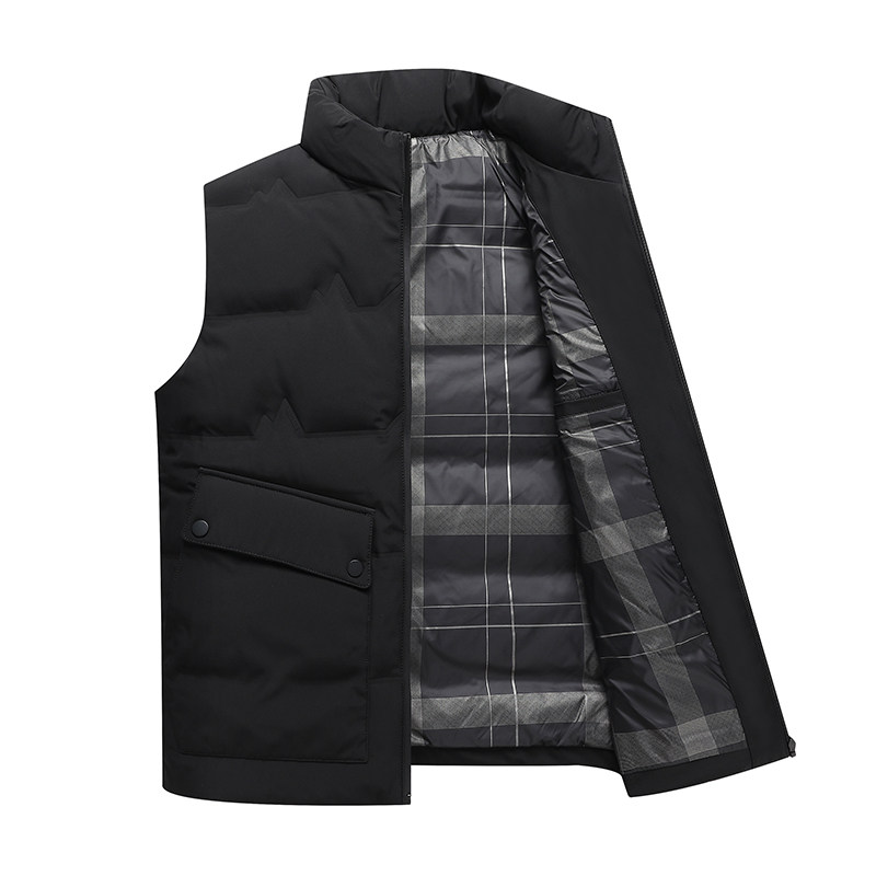 利郎冬季羽绒马甲男中年加厚白鸭绒内胆保暖V领背心爸爸装坎肩
