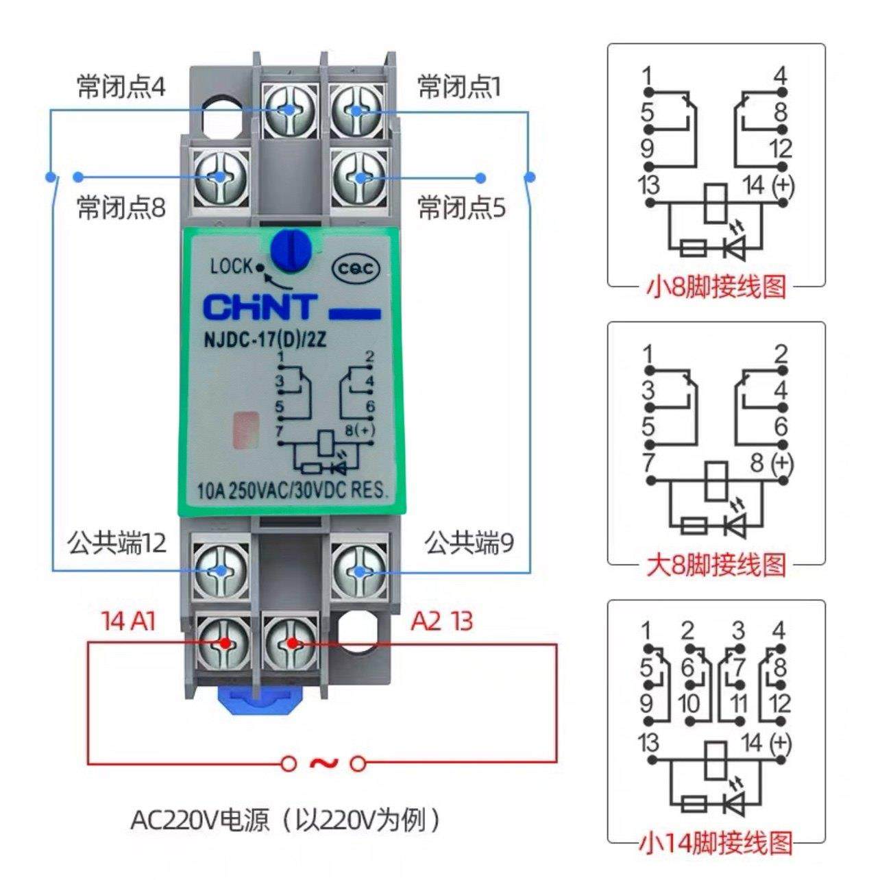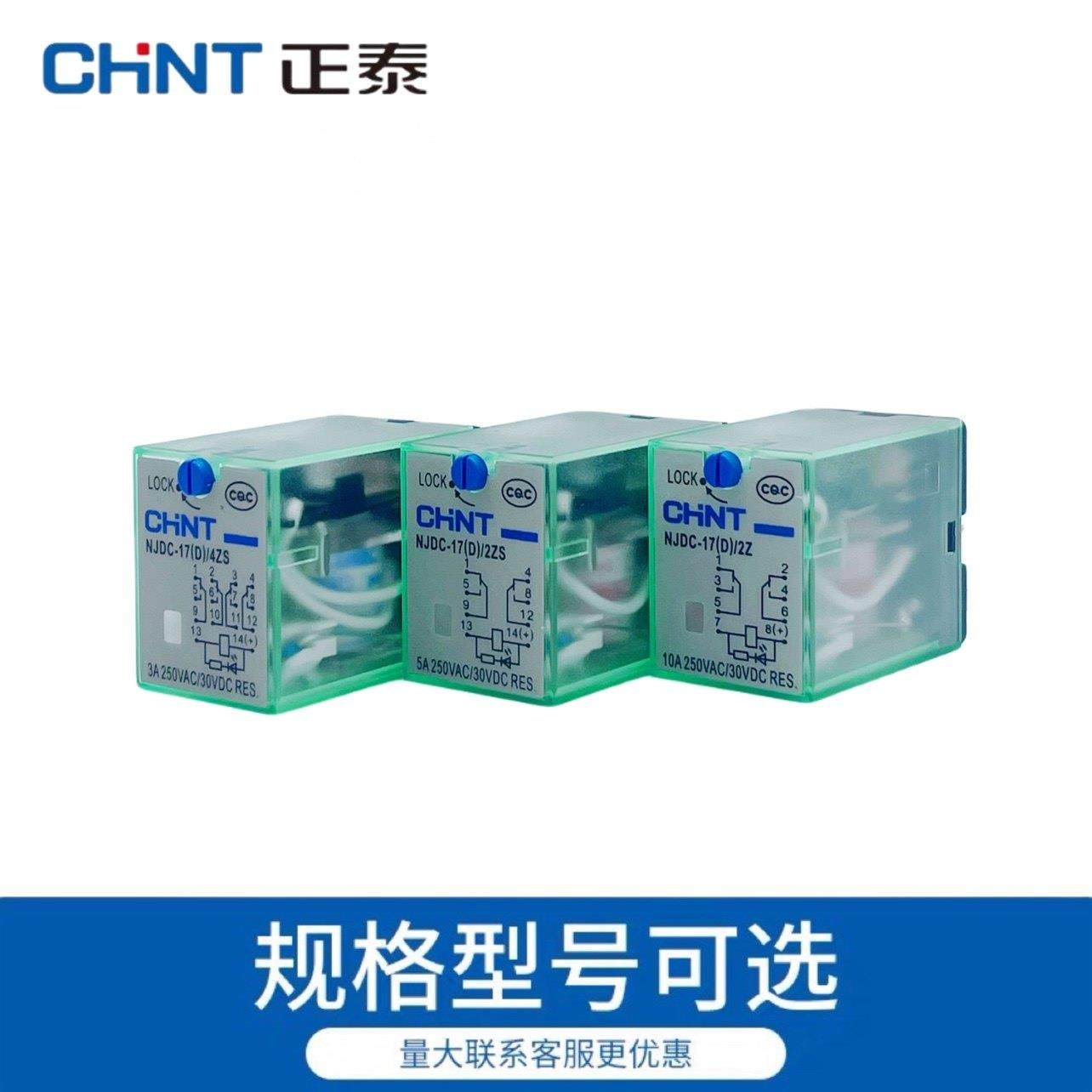 正泰带测试按钮式中间继电器NJDC-17D/2ZS4Z 8脚14脚DC12V24V220V