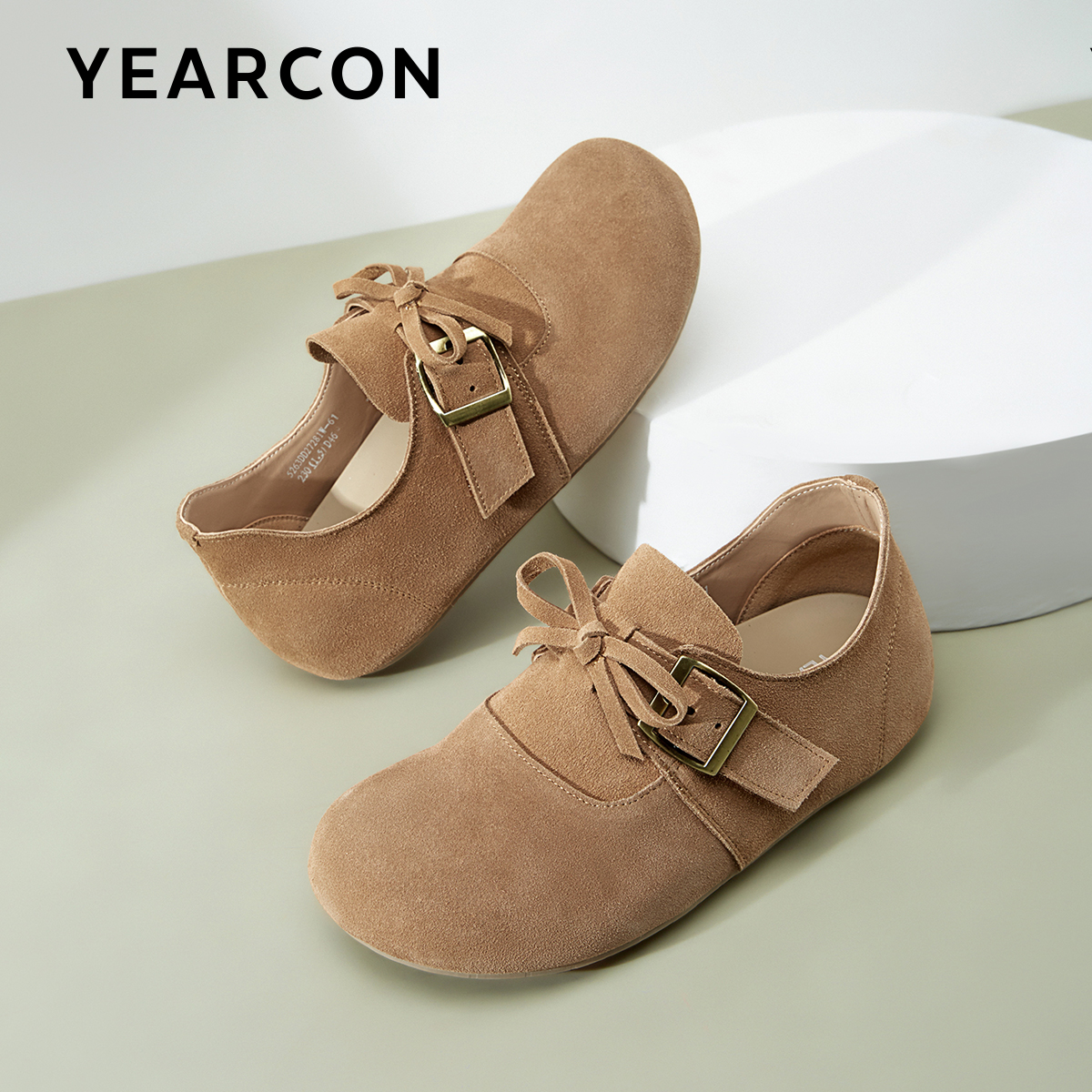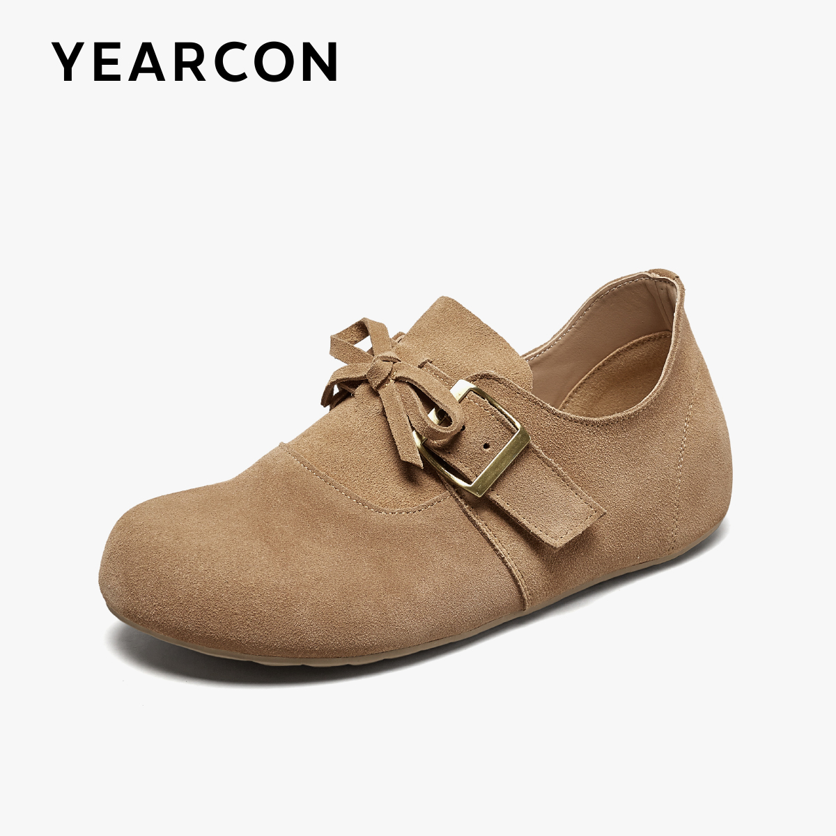 意尔康真皮复古勃肯鞋女2025秋季新款百搭平底单鞋软底乐福博肯鞋