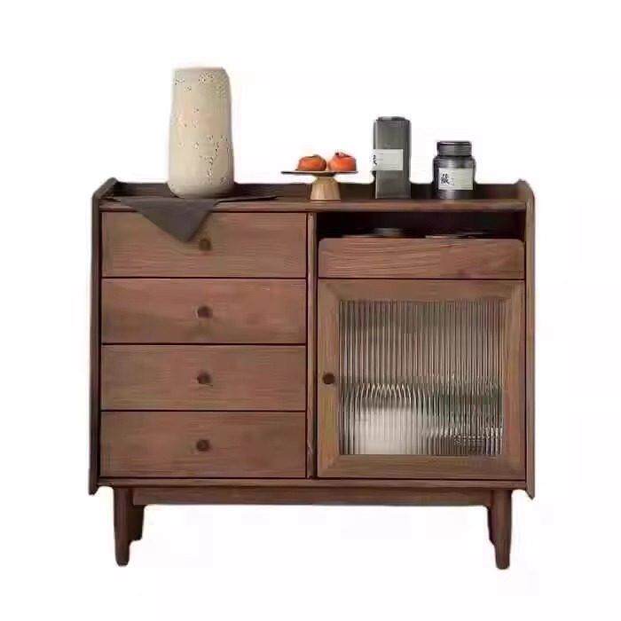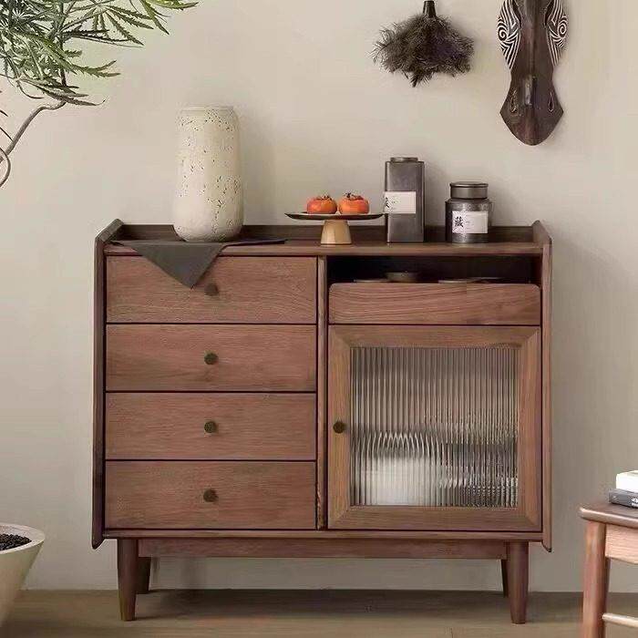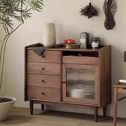 北欧实木边柜储物柜餐客厅靠墙茶水柜咖啡柜黑胡桃木色餐柜