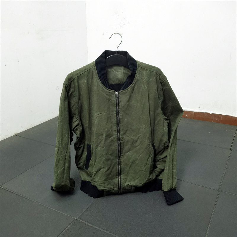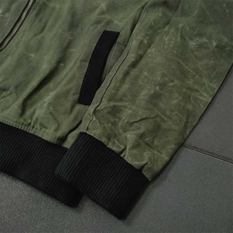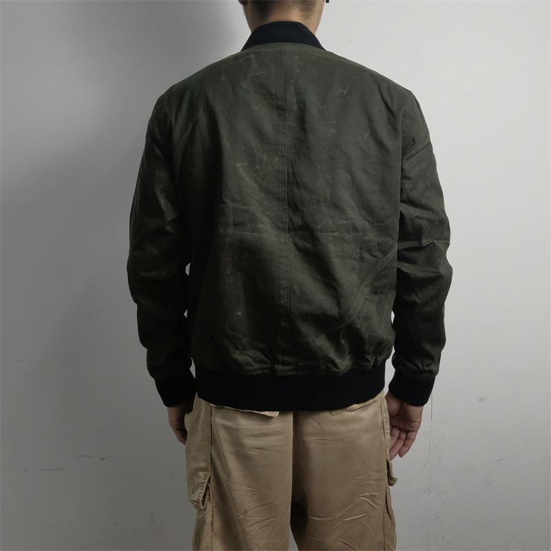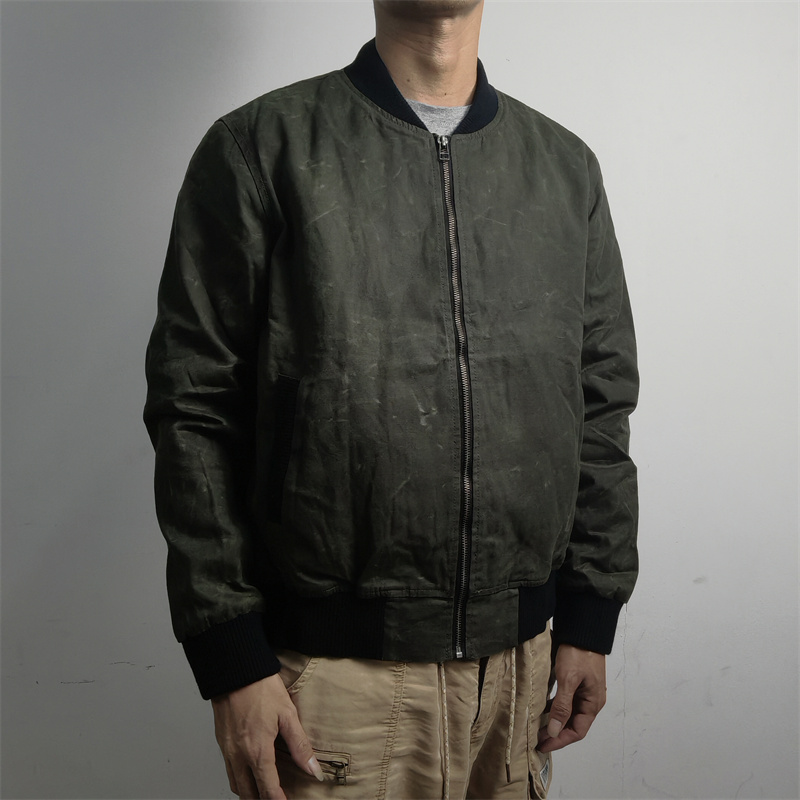 咔叽玩家版自带旧感油蜡布短装螺纹口棒球领拉链修身夹克外套Y412