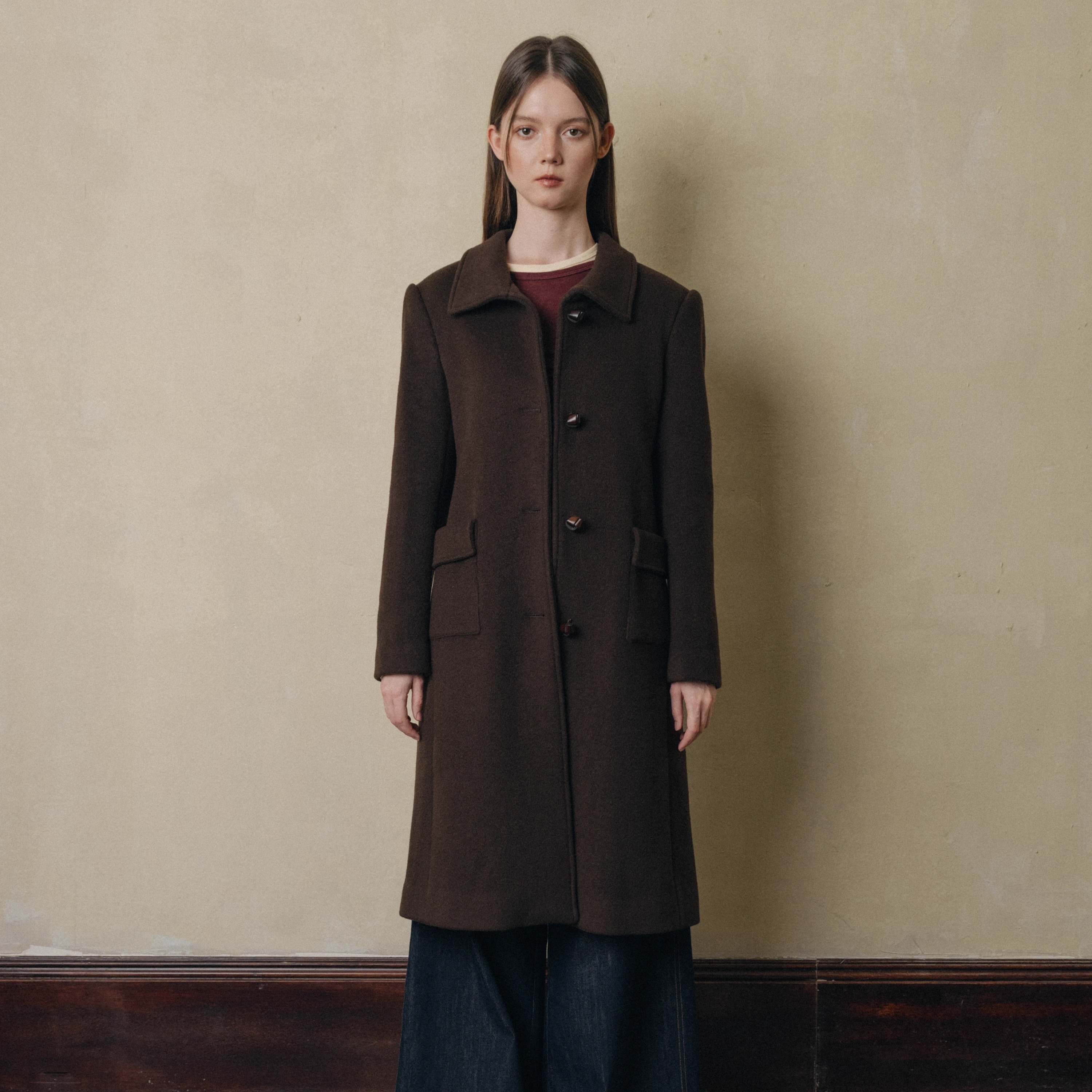 whiteiswhite 冬新款羊毛大衣中长款复古牛角扣可立领毛呢外套女