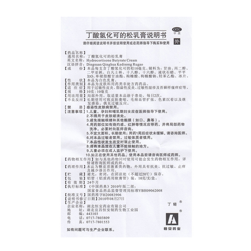 【丁轻】丁酸氢化可的松乳膏20g*1支/盒