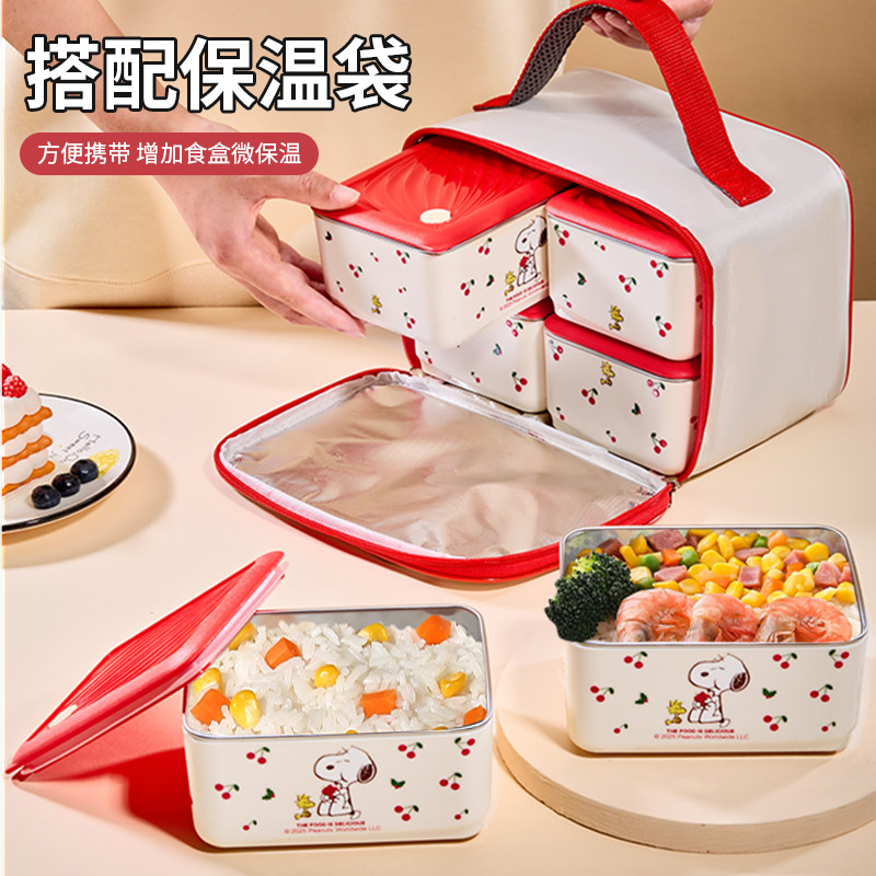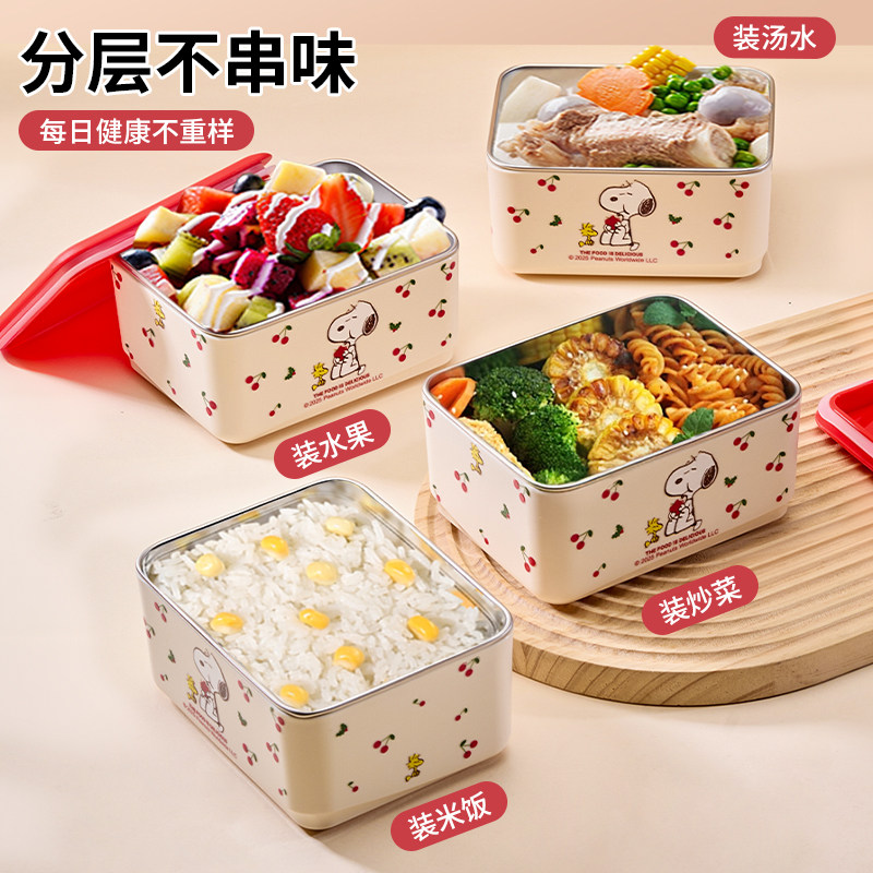 史努比多层保温饭盒上班族专用316L不锈钢小学生上学便当餐盒女生