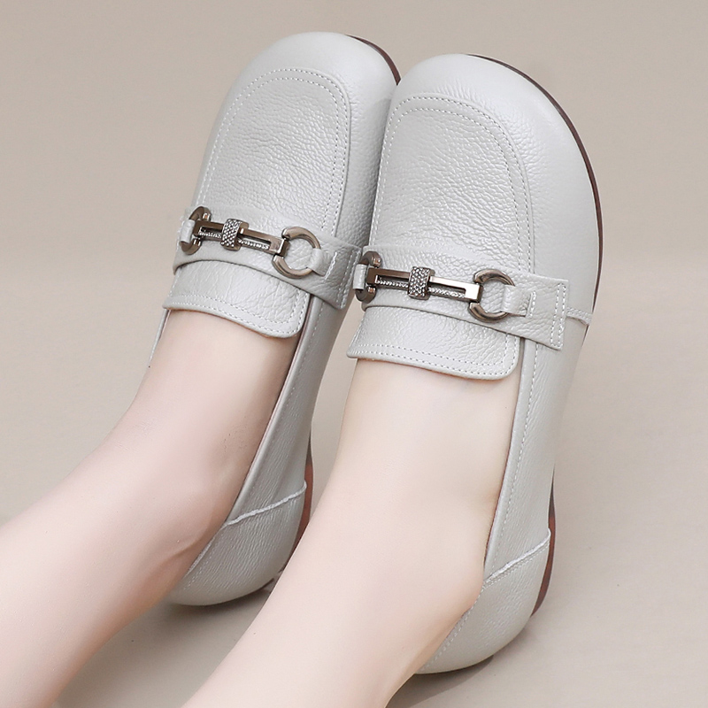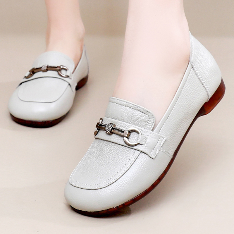 真皮单鞋女乐福鞋春秋舒适圆头妈妈鞋软皮软底中老年皮鞋大码女鞋