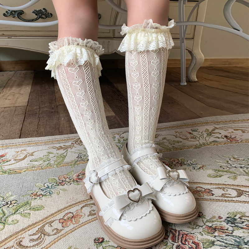 洛丽塔公主裙女童袜子花边袜蕾丝萝莉儿童袜子白色黑色小腿袜网袜