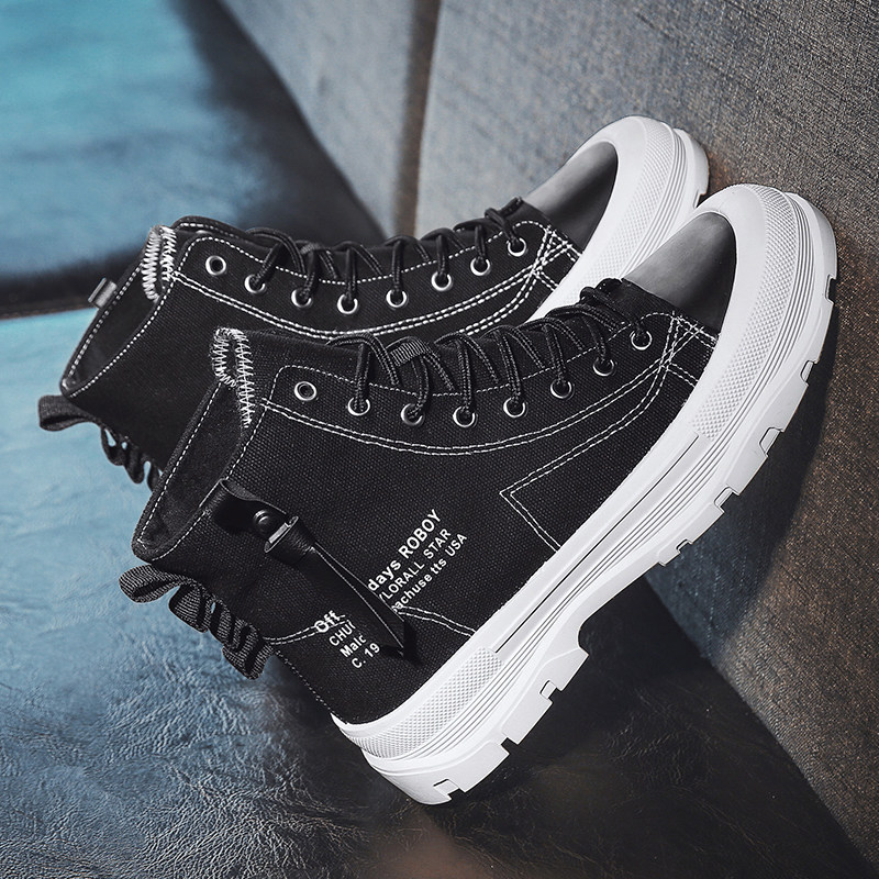 高筒鞋男春季2025新款运动休闲 帆布鞋厚底增高防滑耐磨马丁靴夏