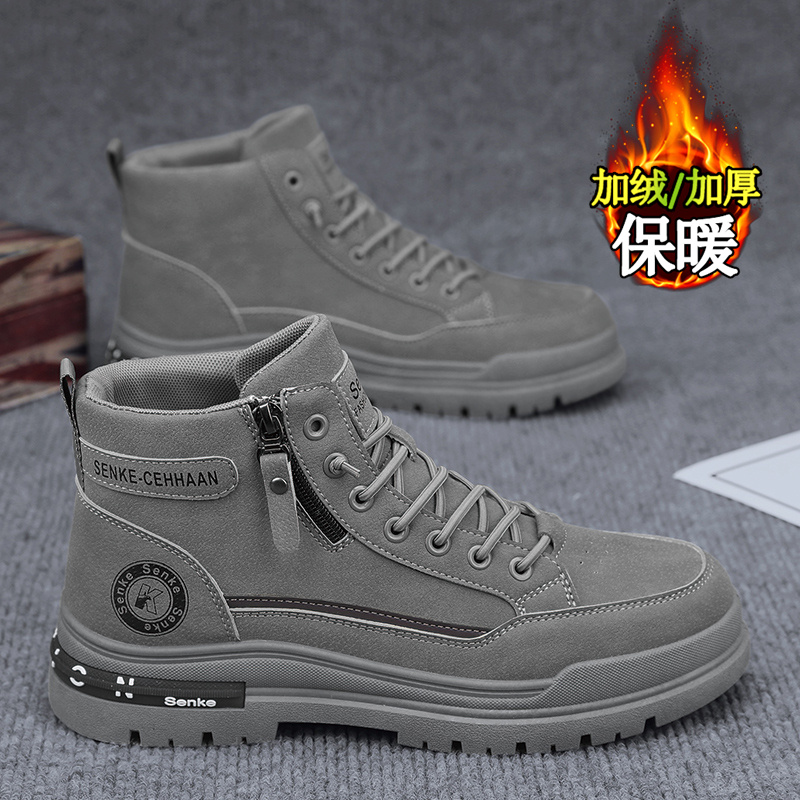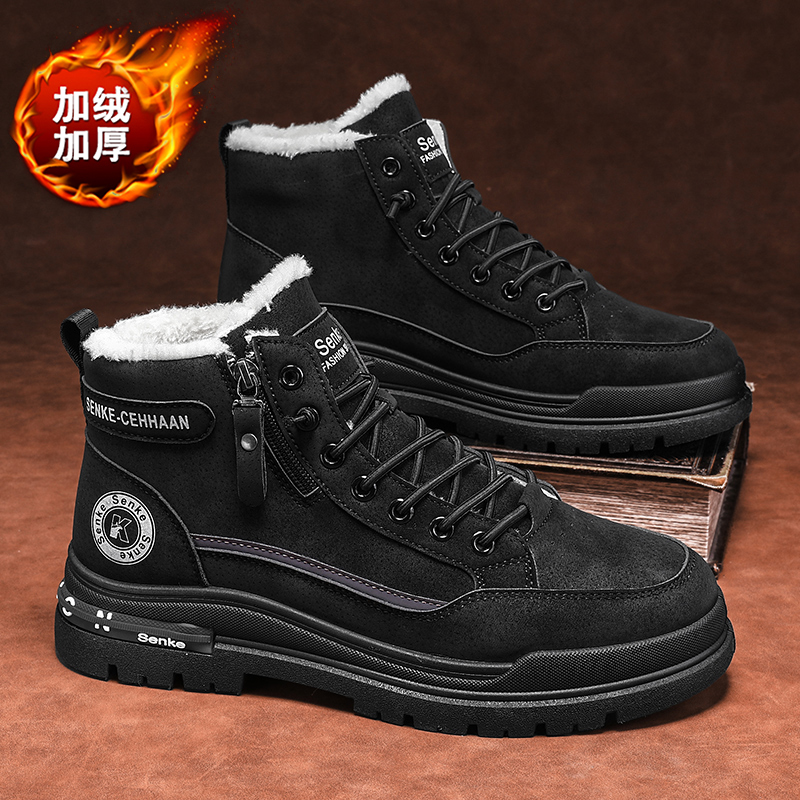 马丁靴男冬季加绒二棉鞋英伦风工装鞋男士工地劳保防滑防水雪地靴