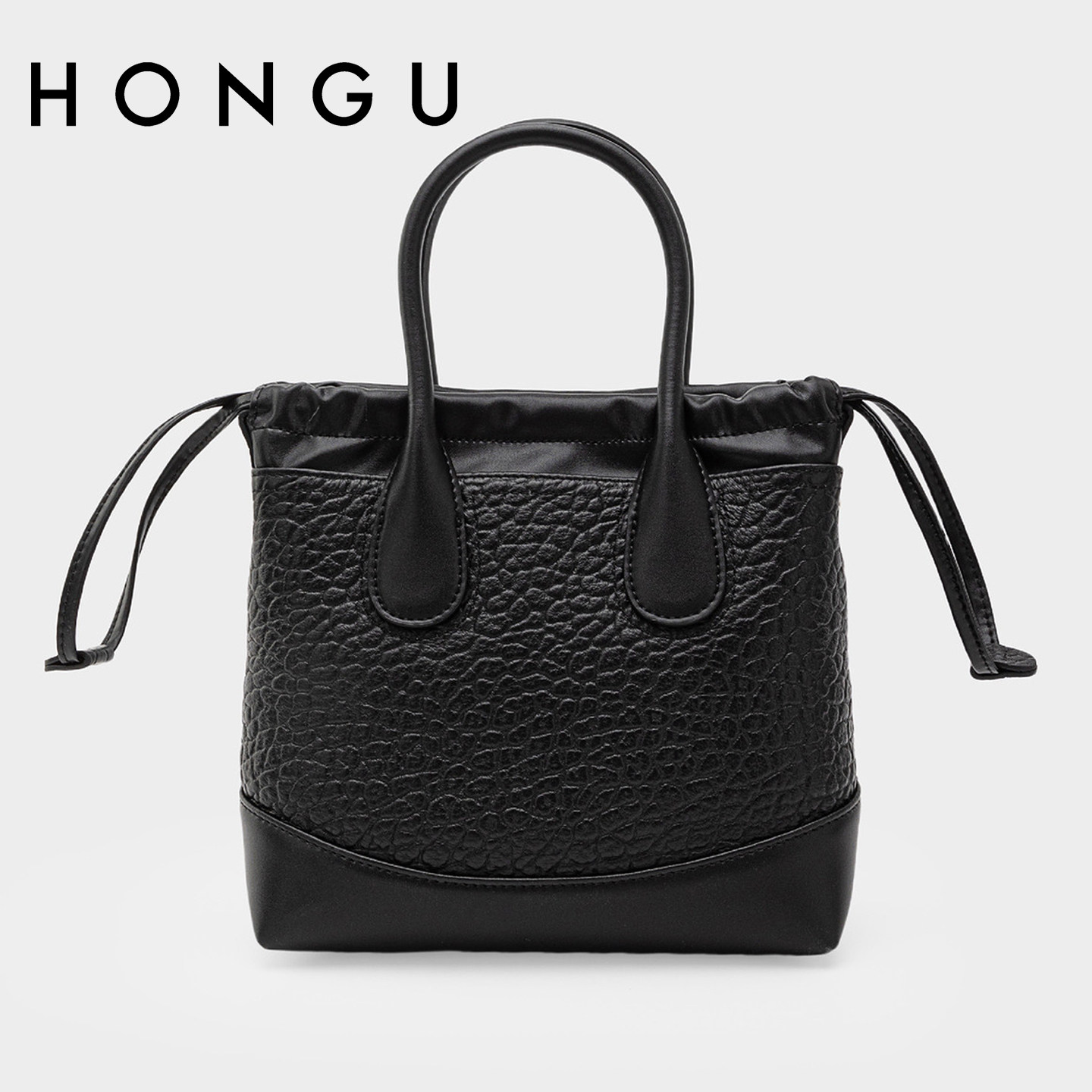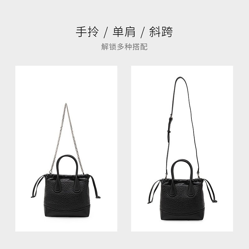 红谷女包2025新款高级感真皮手提斜挎包头层牛皮链条抽绳水桶包小