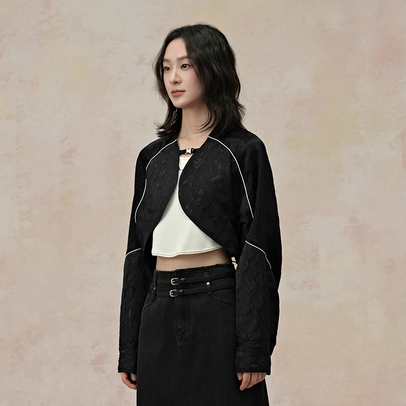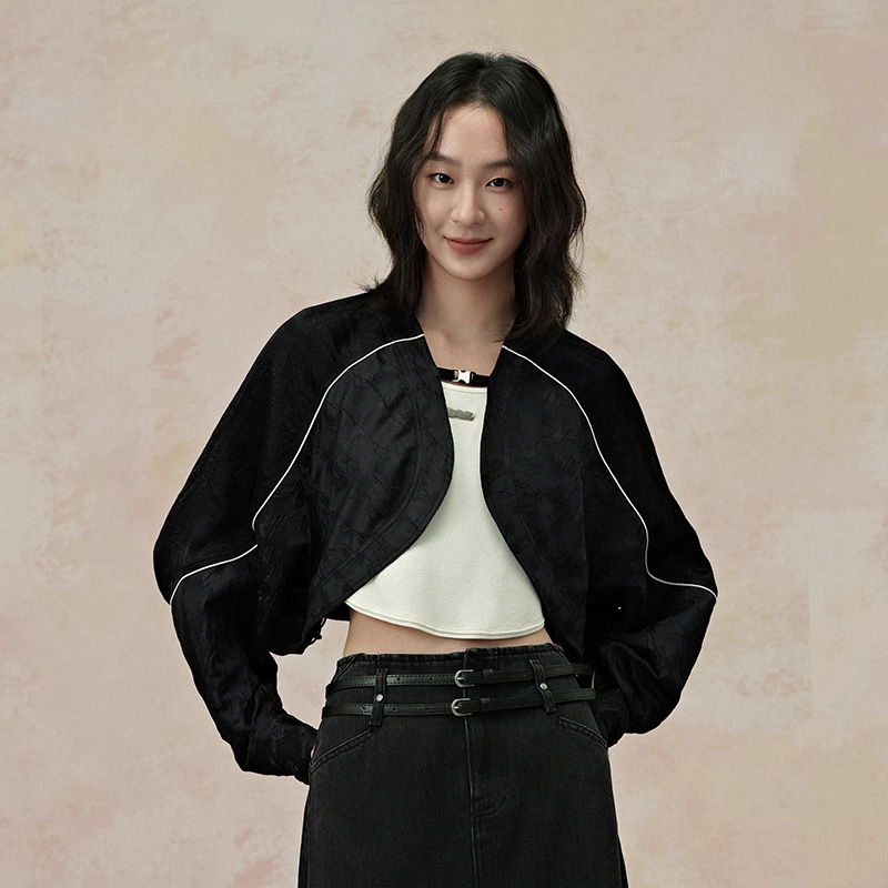 PIT黑色分割线解构拼接长袖短外套女2025夏薄款防晒夹克上衣