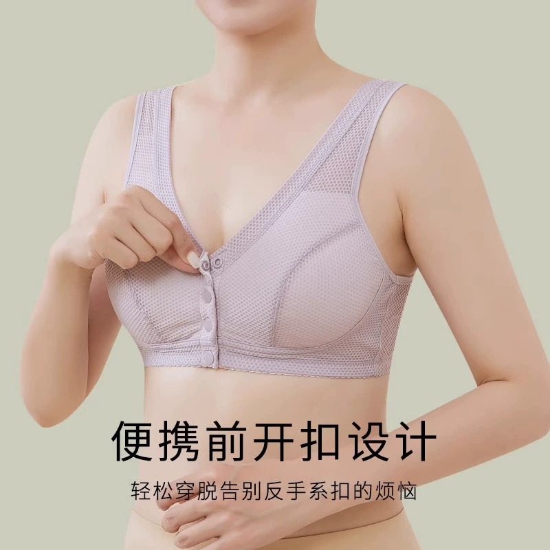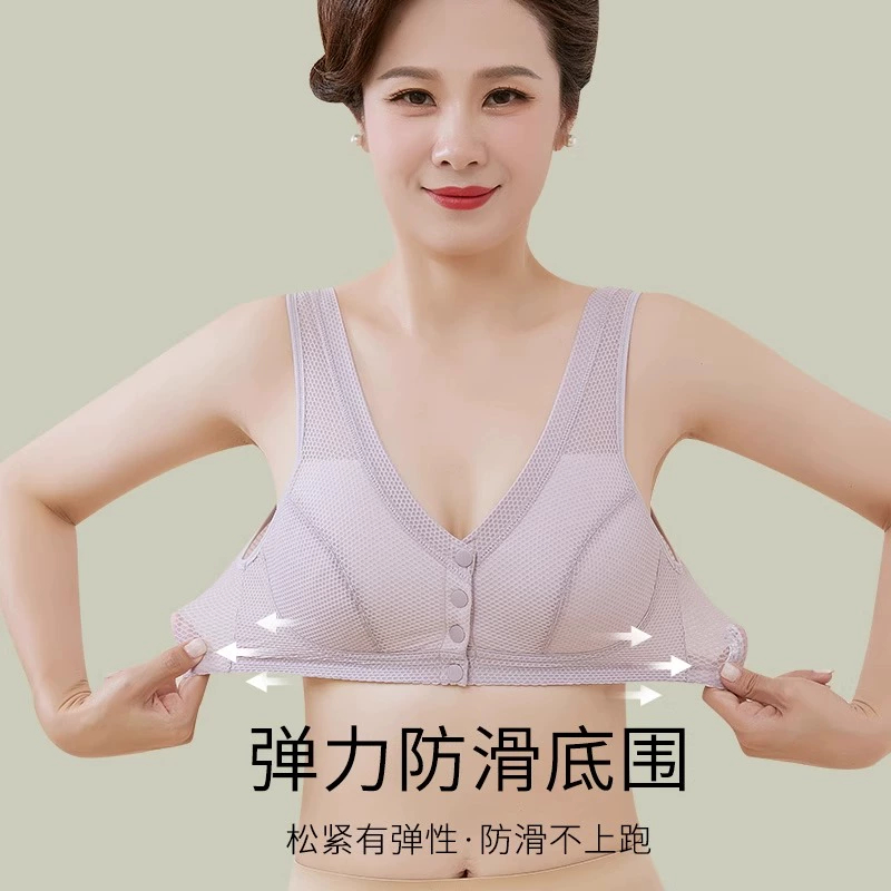 妈妈内衣无钢圈大码透气夏季前扣背心一体中老年人女士收副乳文胸