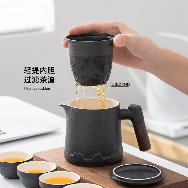 陶瓷茶壶单个盖碗带盖过滤木柄简约家用功夫茶具大容量防烫泡茶器