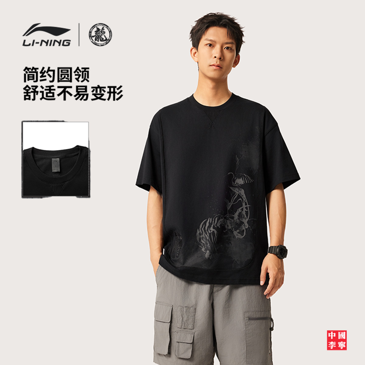 李宁 x 成龙联名功夫系列T恤男士2025新款夏季宽松运动服