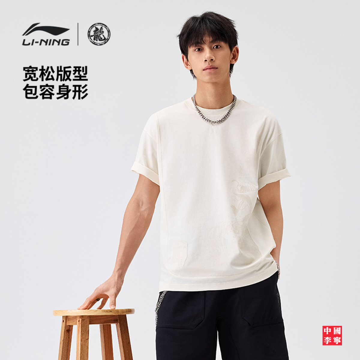 李宁男子宽松短袖文化衫