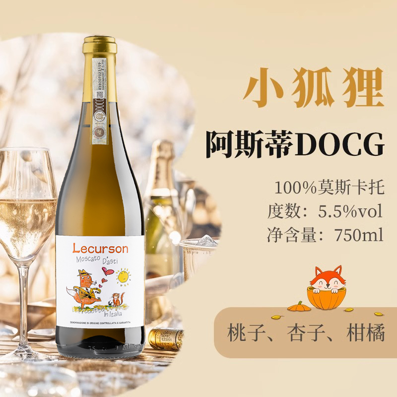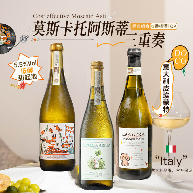 【自营】山竹冰茉莉意大利进口莫斯卡托起泡酒DOCG气泡甜白葡萄酒