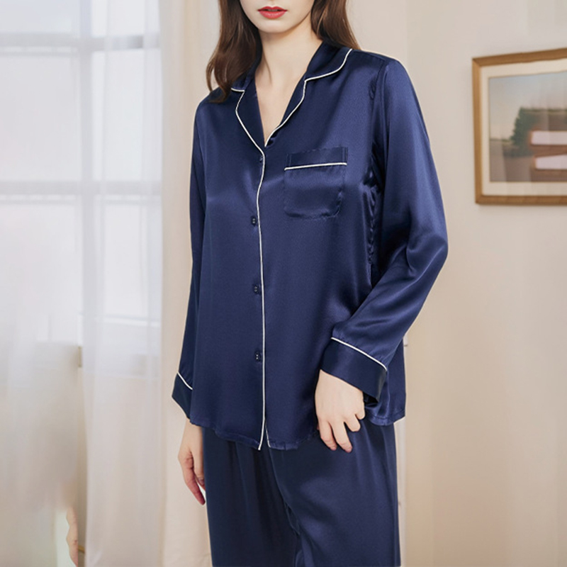 一丝牵 真丝睡衣女士100%桑蚕丝长袖长裤家居服套装2025秋两件套