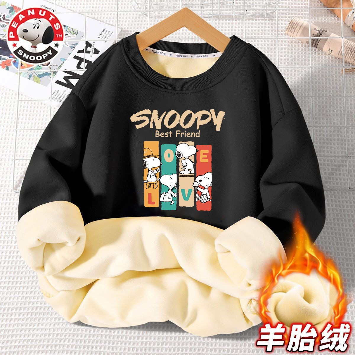 史努比童装男女童运动卫衣秋冬2026新款校园撞色上衣冬款痞帅儿童