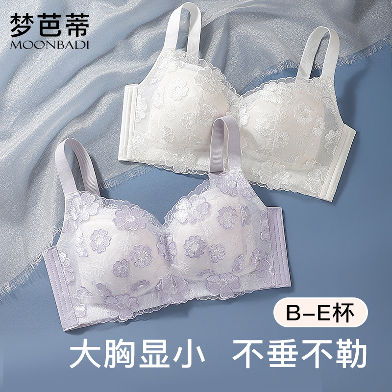 梦芭蒂内衣女大胸显小无钢圈调整大码胖mm收副乳防下垂文胸罩