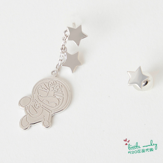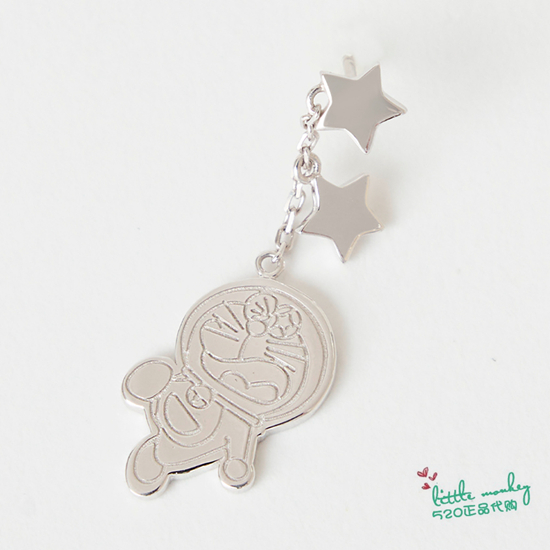 日本代购 哆啦A梦/机器猫 小星星 可爱银耳环耳饰