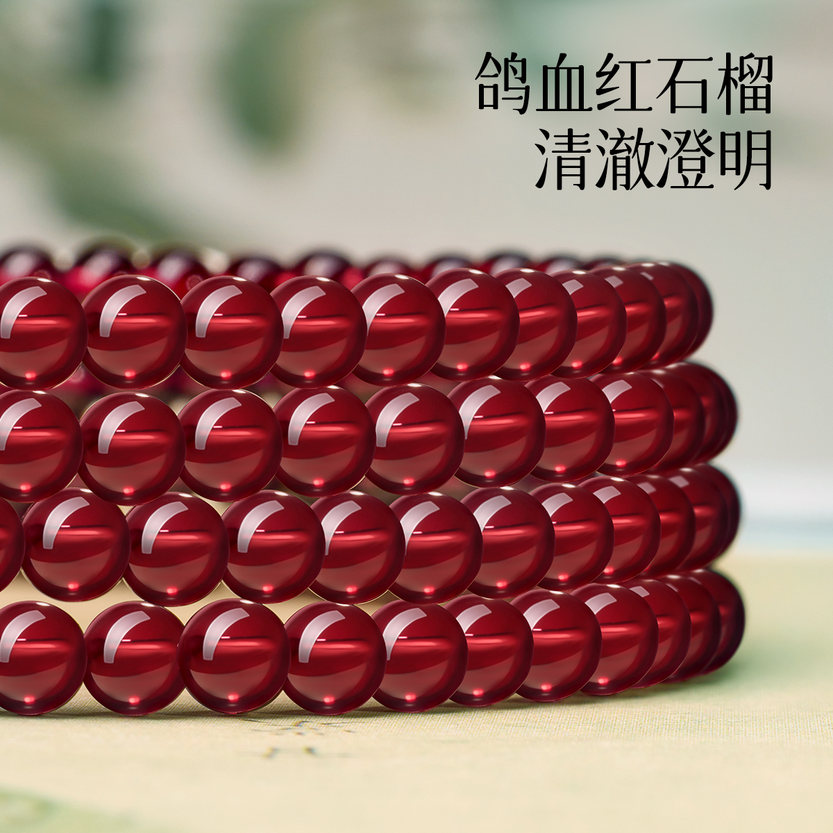 庆祥泰纯天然石榴石素圈手串女官方旗舰店酒红全净体多圈串珠手链