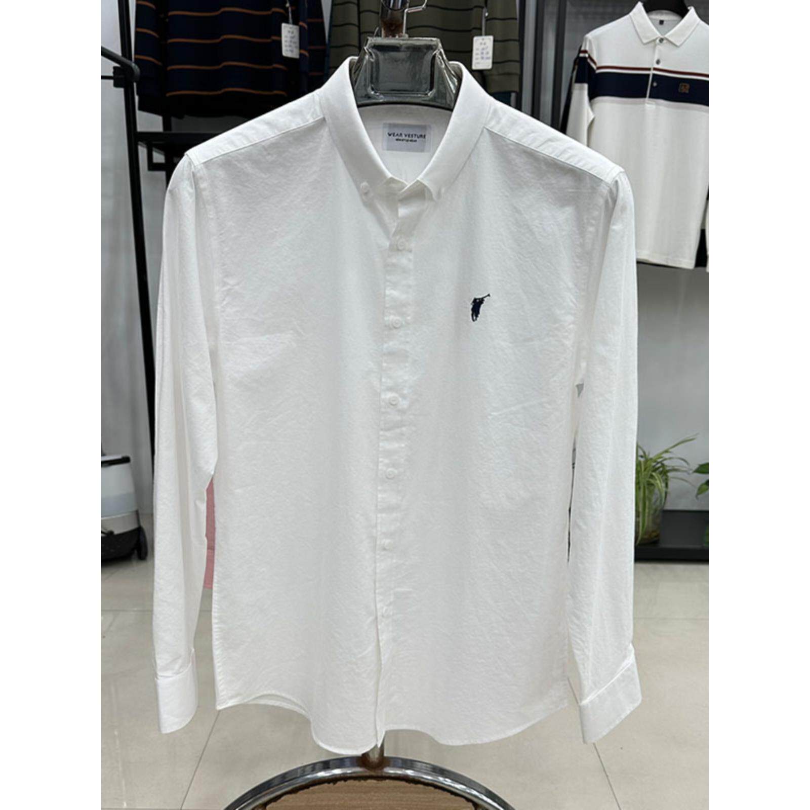 保罗商务白衬衫男长袖正装春秋职业西装白色衬衣刺绣工作服制服潮