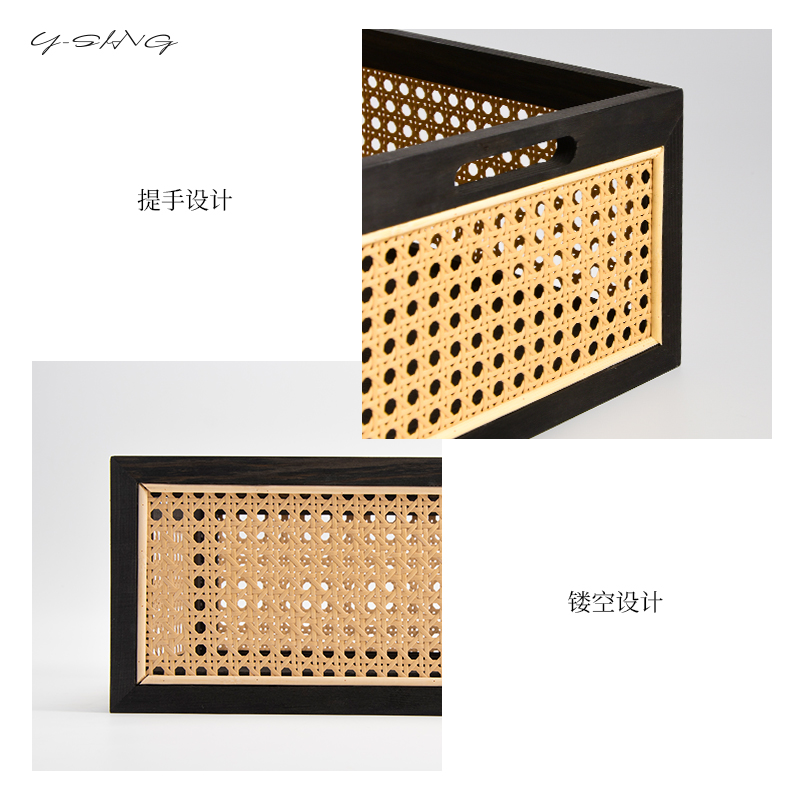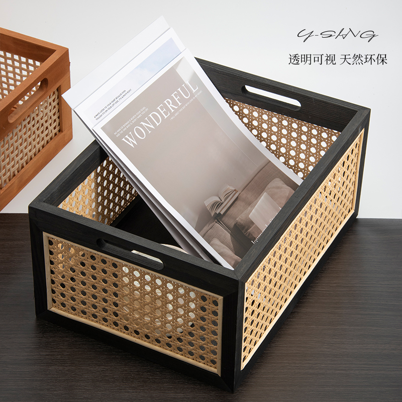 藤编收纳筐实木复古桌面收纳篮竹编零食杂物收纳筐储物整理收纳盒