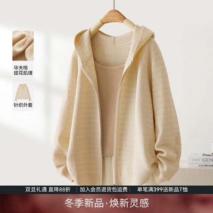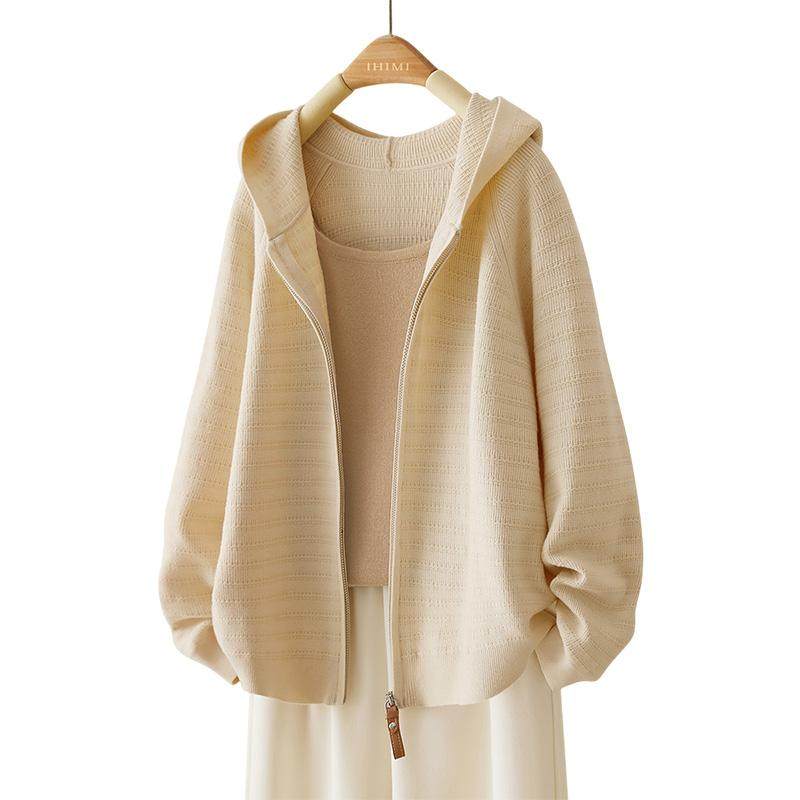IHIMI海谧巨好看今年流行早秋女士2025秋季新款百搭帽衫针织外套