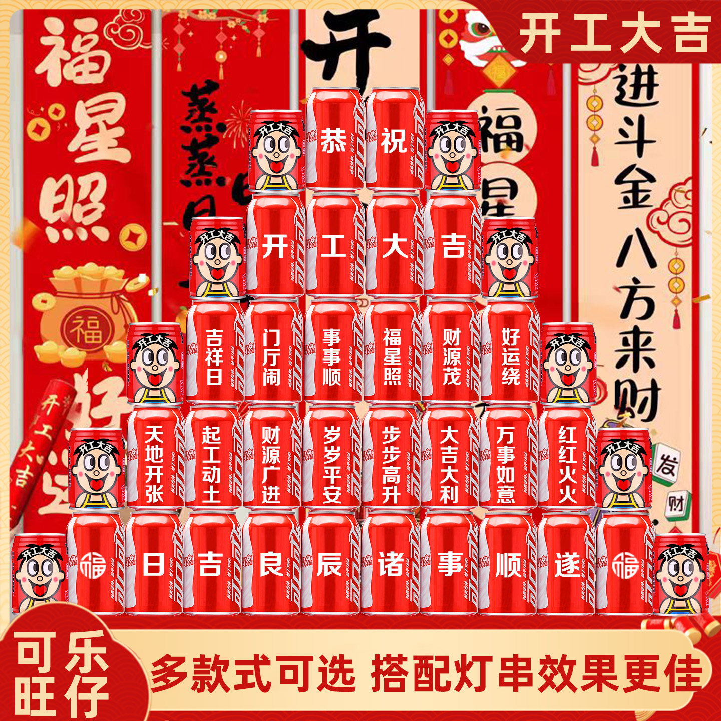 可口可乐开工大吉仪式全套可乐订制刻字装修动工大吉装饰布置仪式