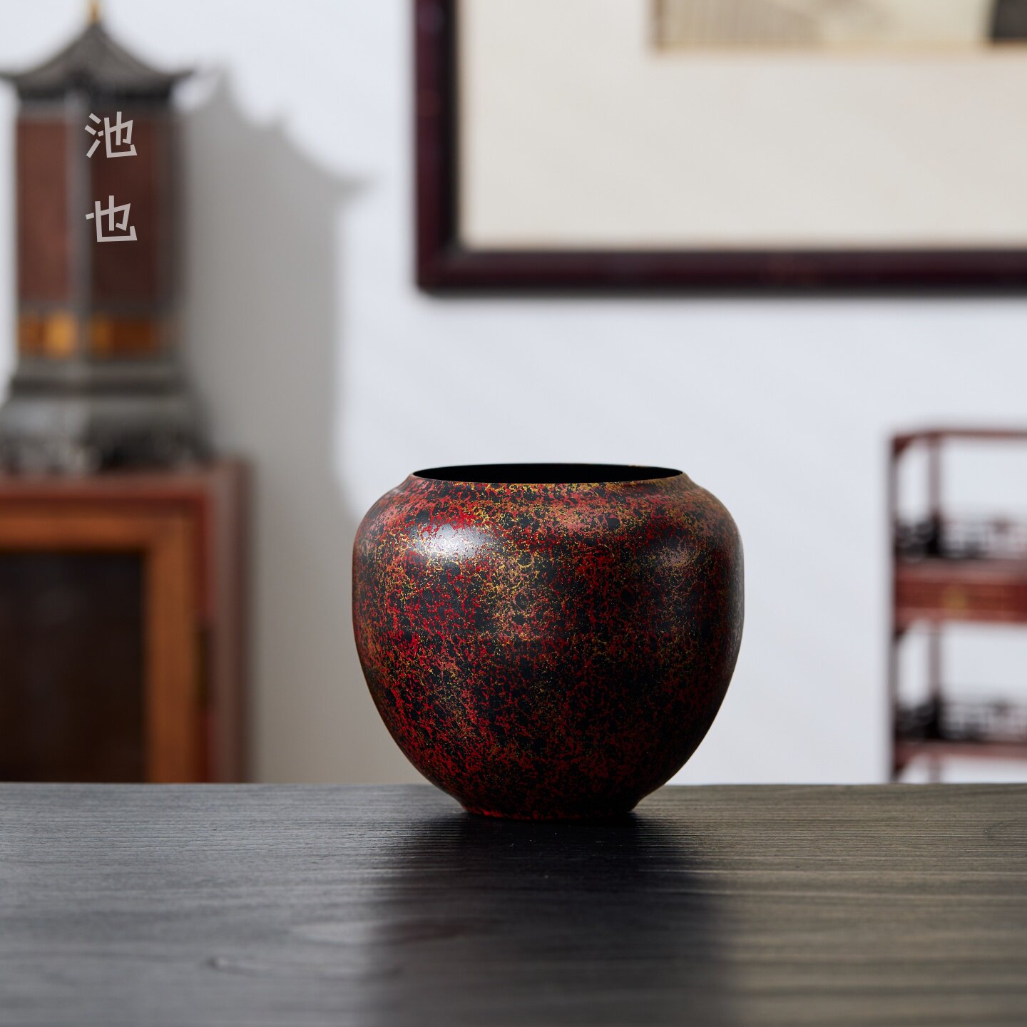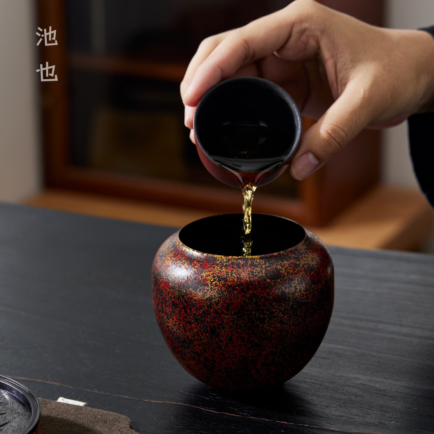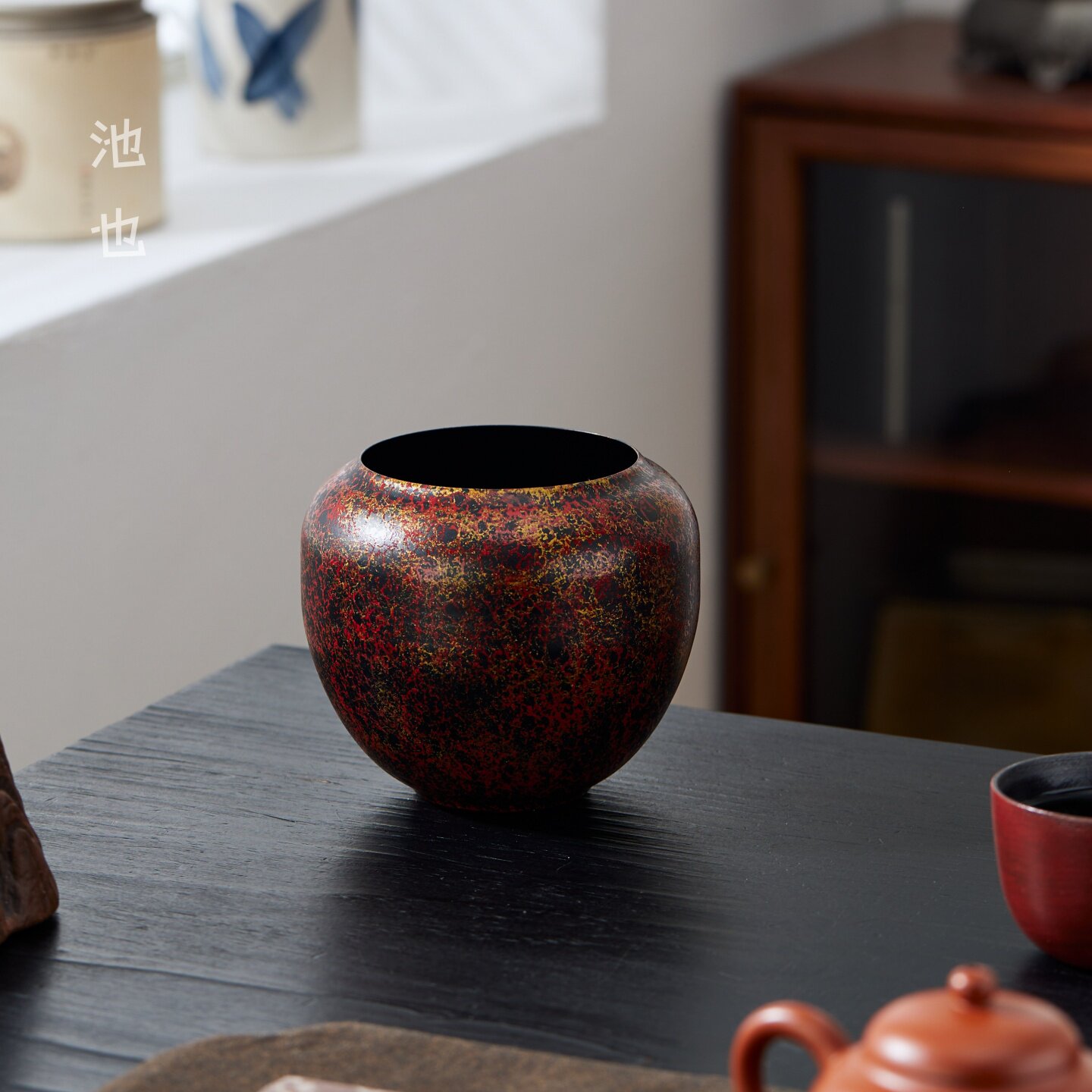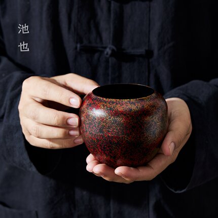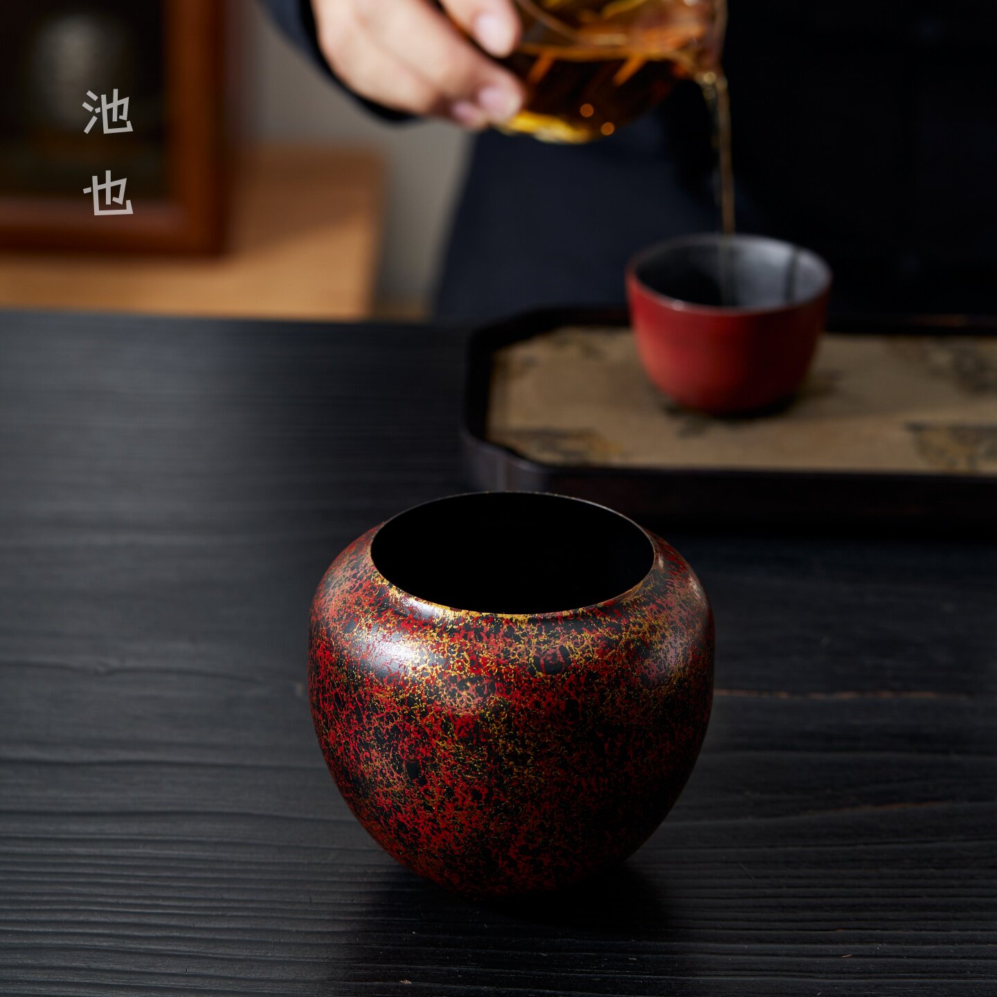 池也漆彩红金老铁茶渣缸茶洗小号家用功夫茶具配件建水茶盂废水缸