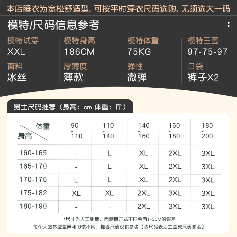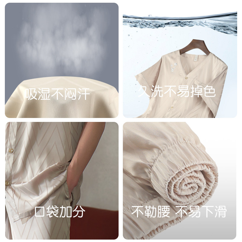 轩靓睡衣男夏季冰丝薄款短袖长裤