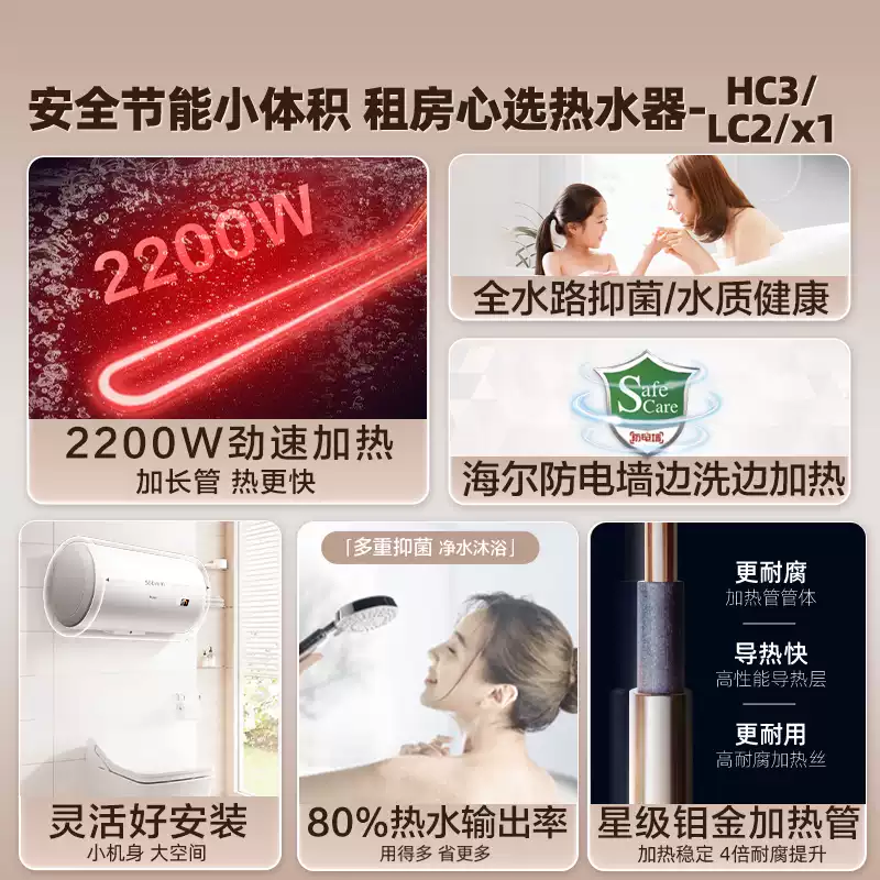 海尔电热水器家用40升50升60升80L卫生间节能洗澡统帅X1储水式LT