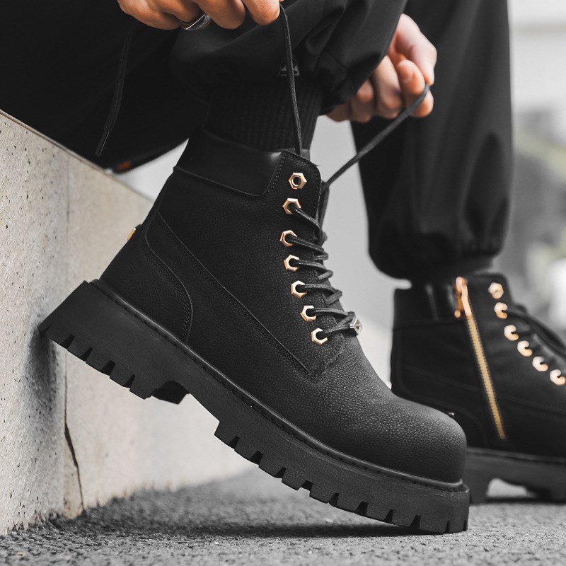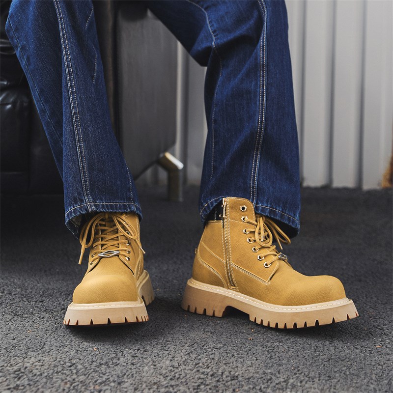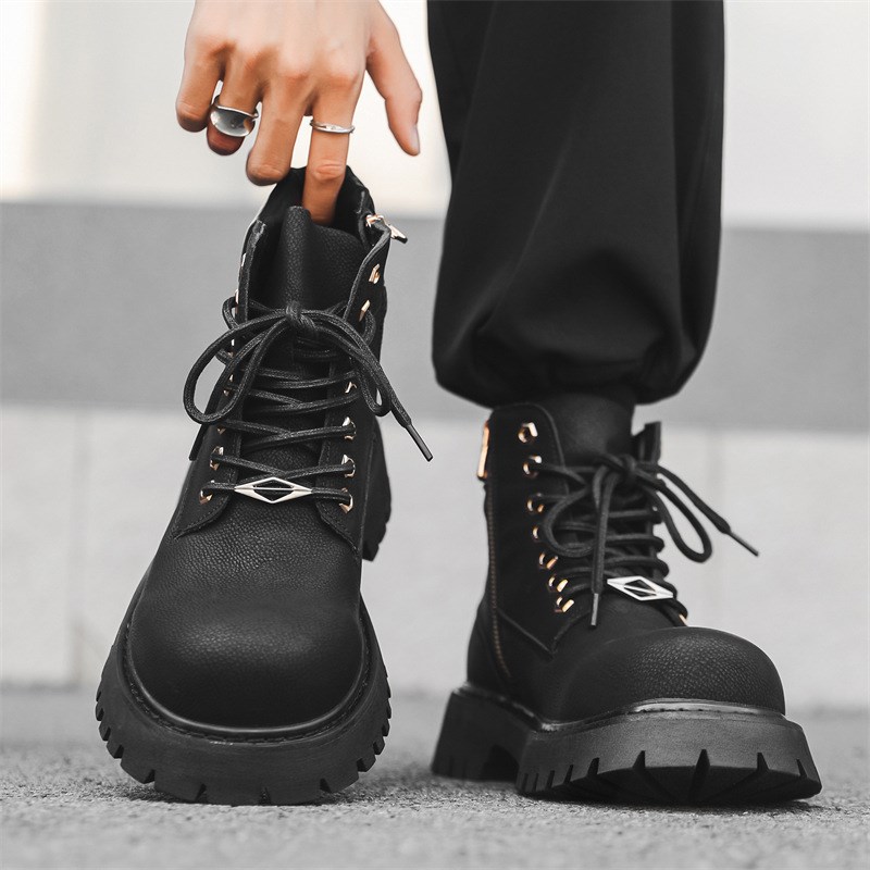 马丁靴男款厚底增高英伦风冬季加绒高帮机车工装短靴66621-P