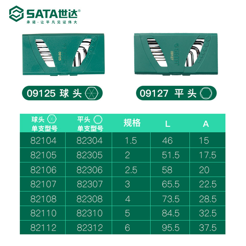 世达工具内六角扳手套装球平头内六方棱内六角螺丝刀09125/09127
