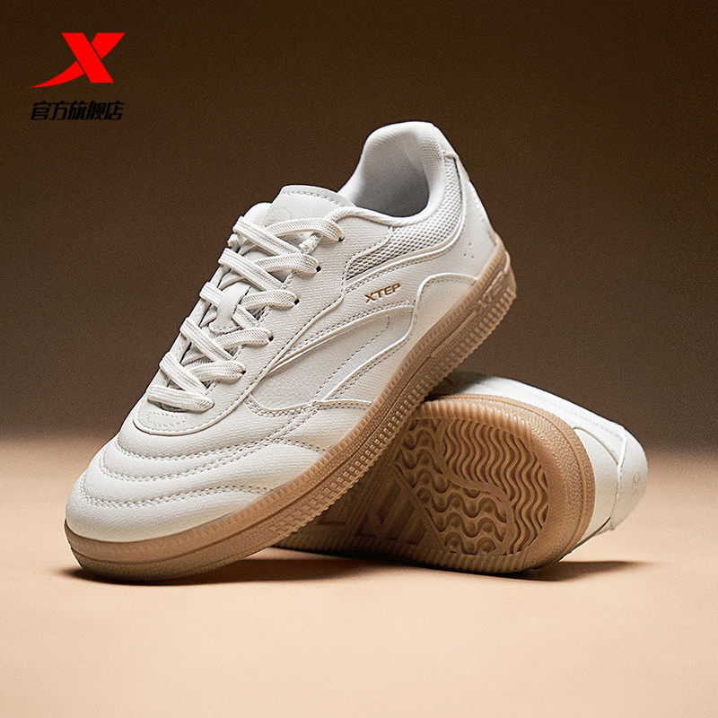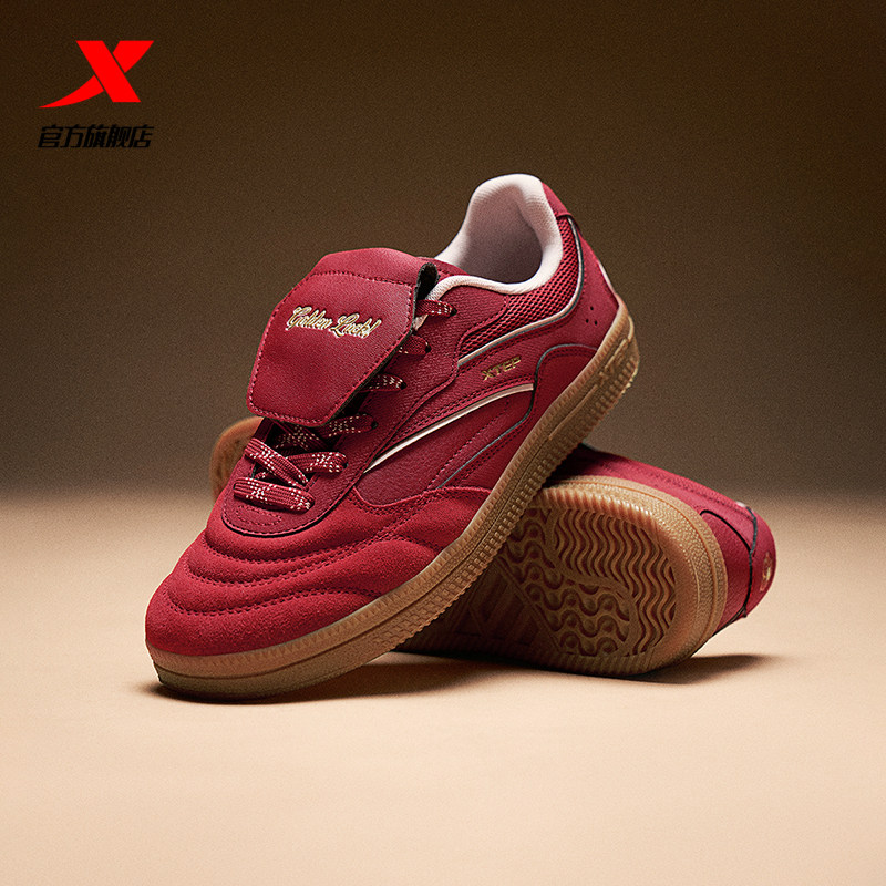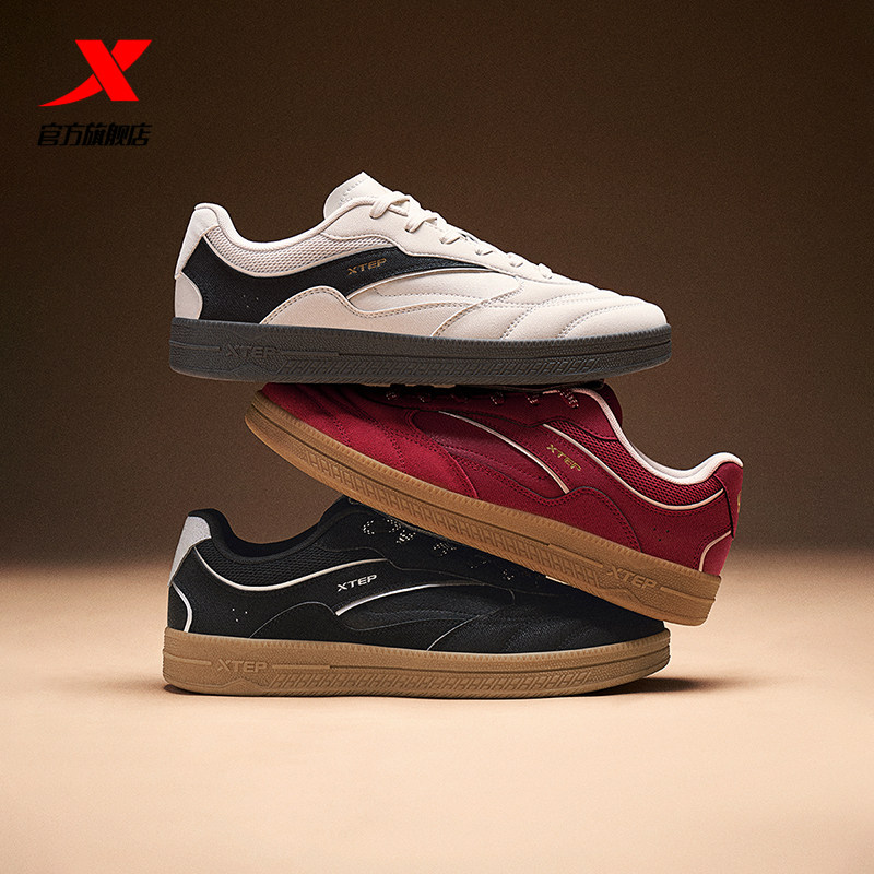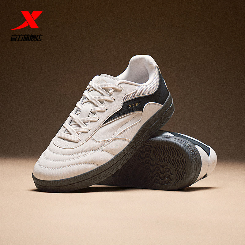 特步德训鞋丨男鞋革面足球鞋冬季经典薄底男女平底赛车鞋休闲鞋子