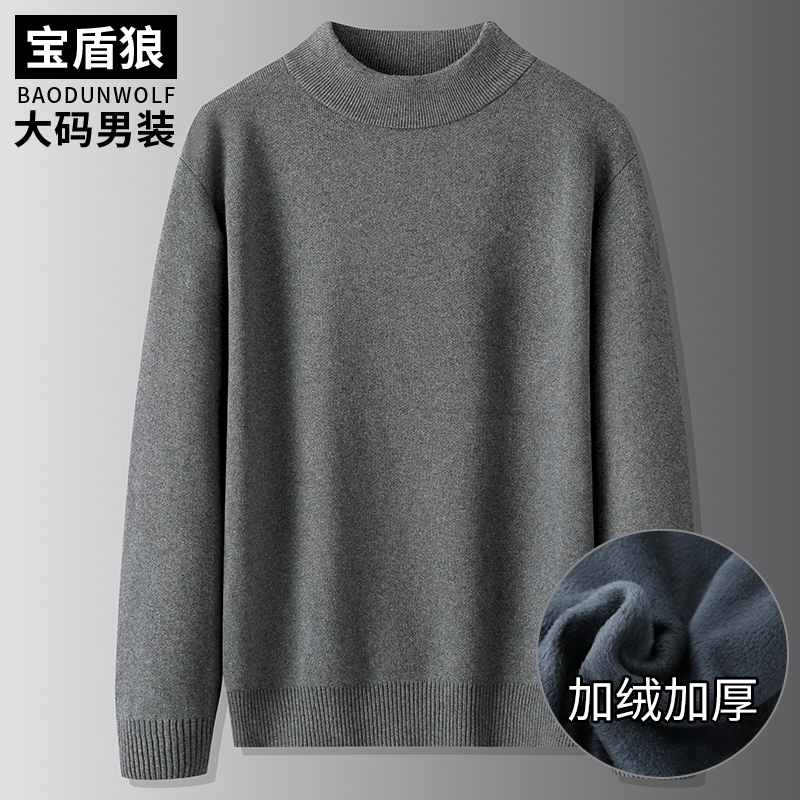 秋冬加厚大码男式半高领套头针织衫特大号宽松弹力纯棉打底毛衣男