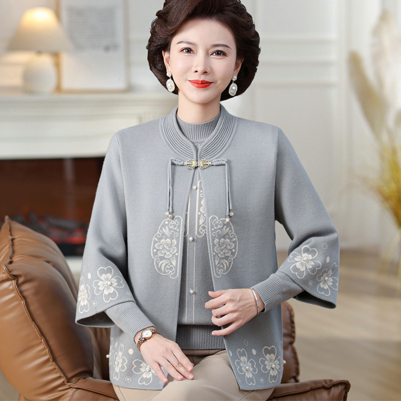 2025新中式妈妈秋装针织两件套中老年女秋冬国风毛衣羊毛开衫外套