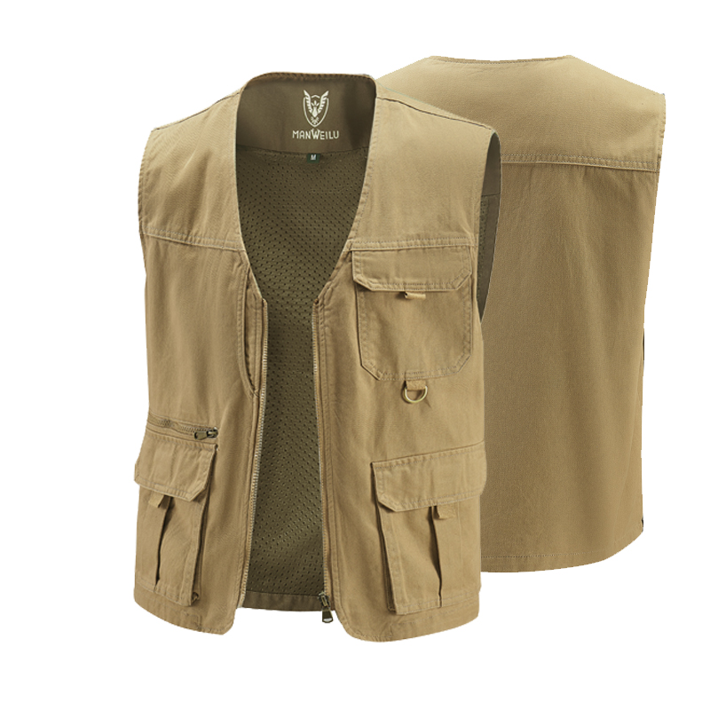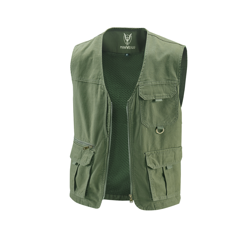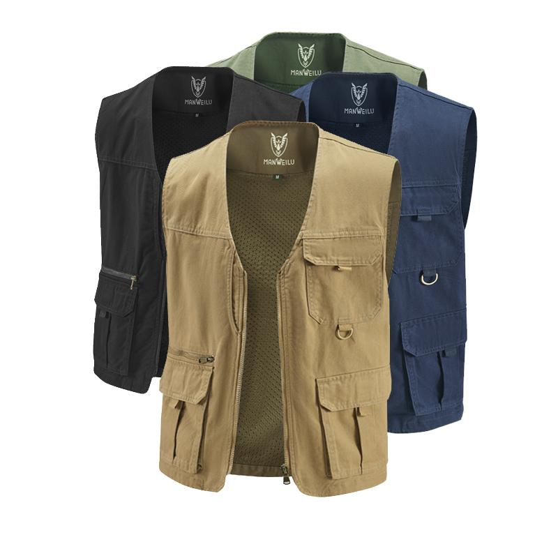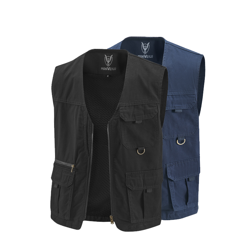 春秋新款纯棉男士马甲背心多口袋马夹中老年休闲宽松大码坎肩外套