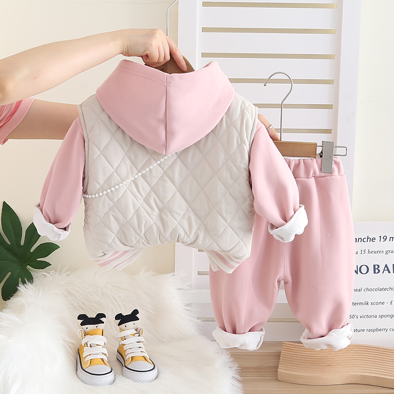女童加绒套装洋气新款2025冬装宝宝加厚马甲冬季棉衣儿童三件套潮