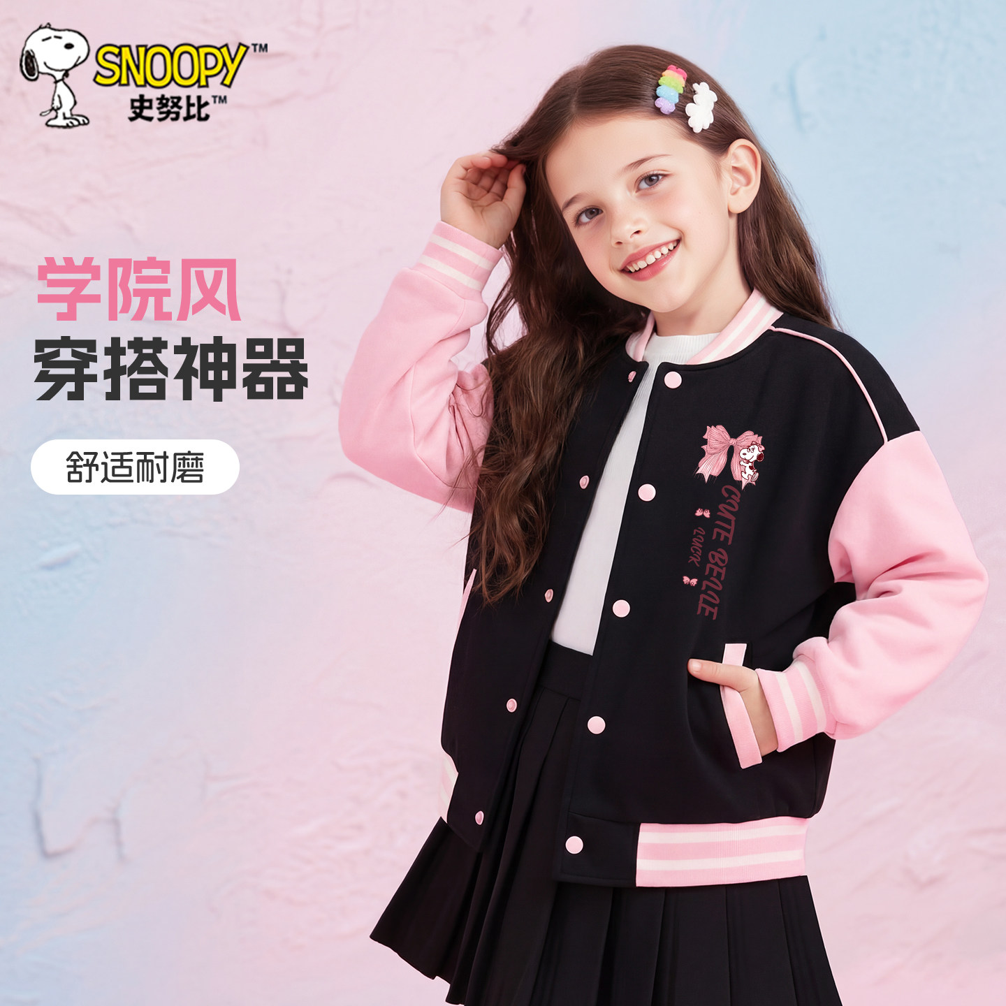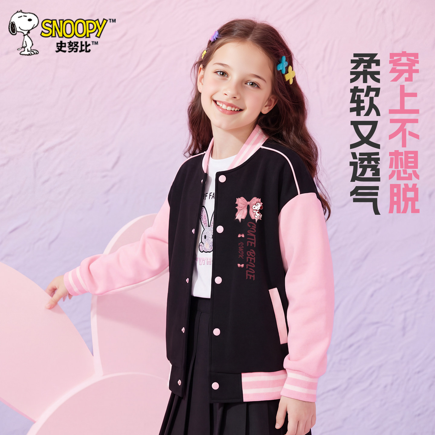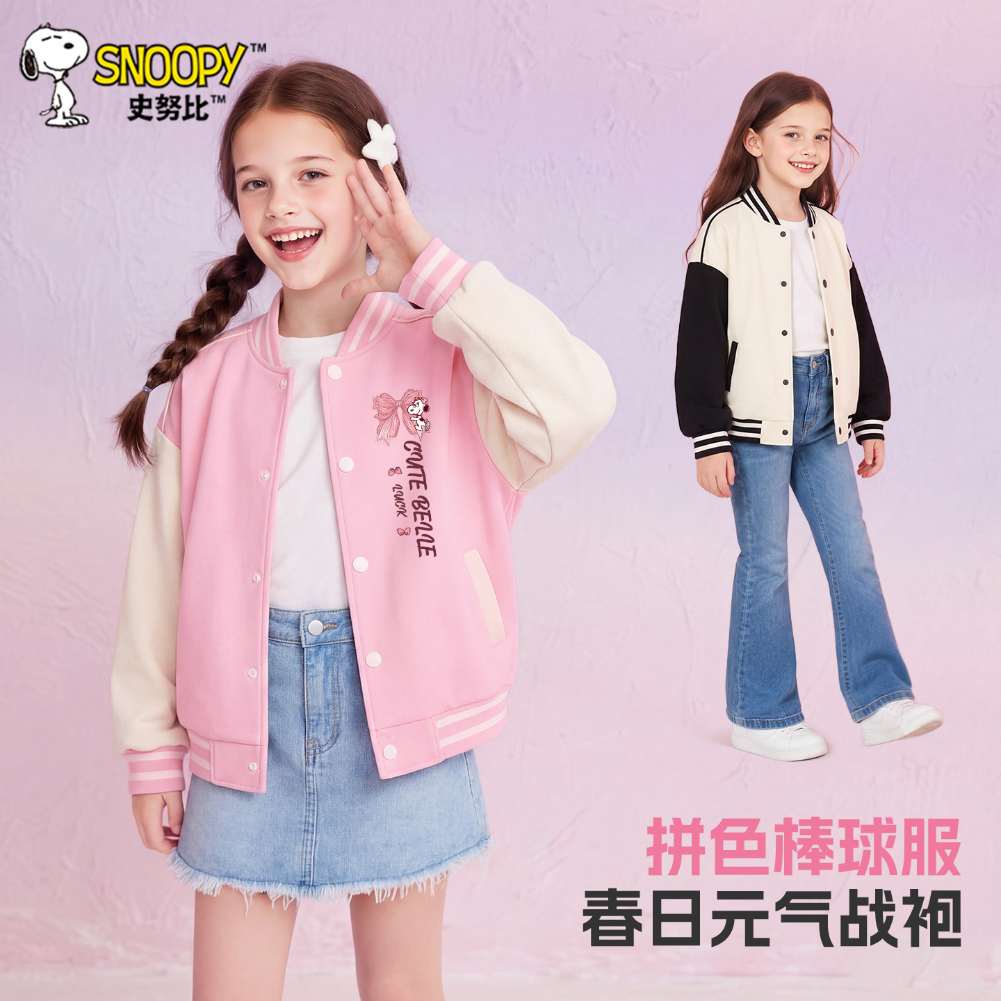 史努比童装女童外套2026新款儿童春秋款棒球服中大童洋气春装夹克