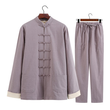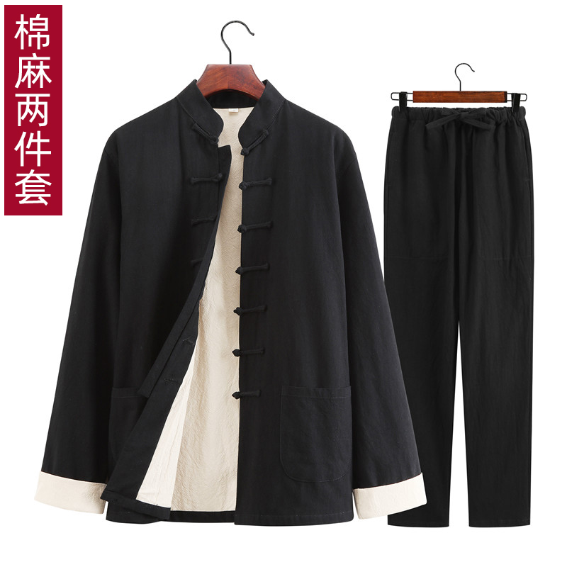 中国风唐装男士长袖外套套装中老年青年春秋冬季汉服盘扣居士服
