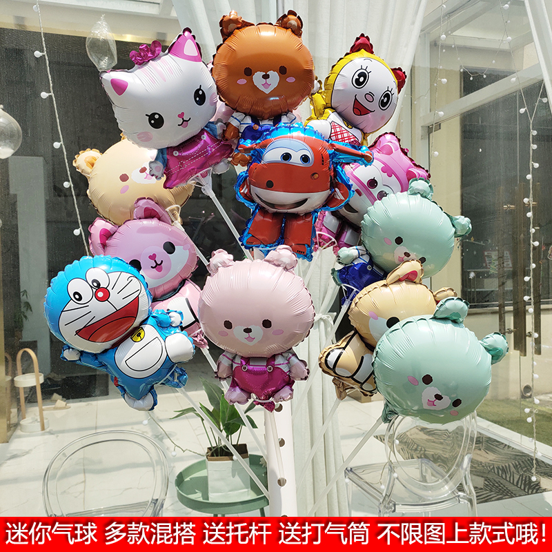 迷你气球微商扫码引流活动地推小礼品儿童卡通铝膜带杆手持棒气球