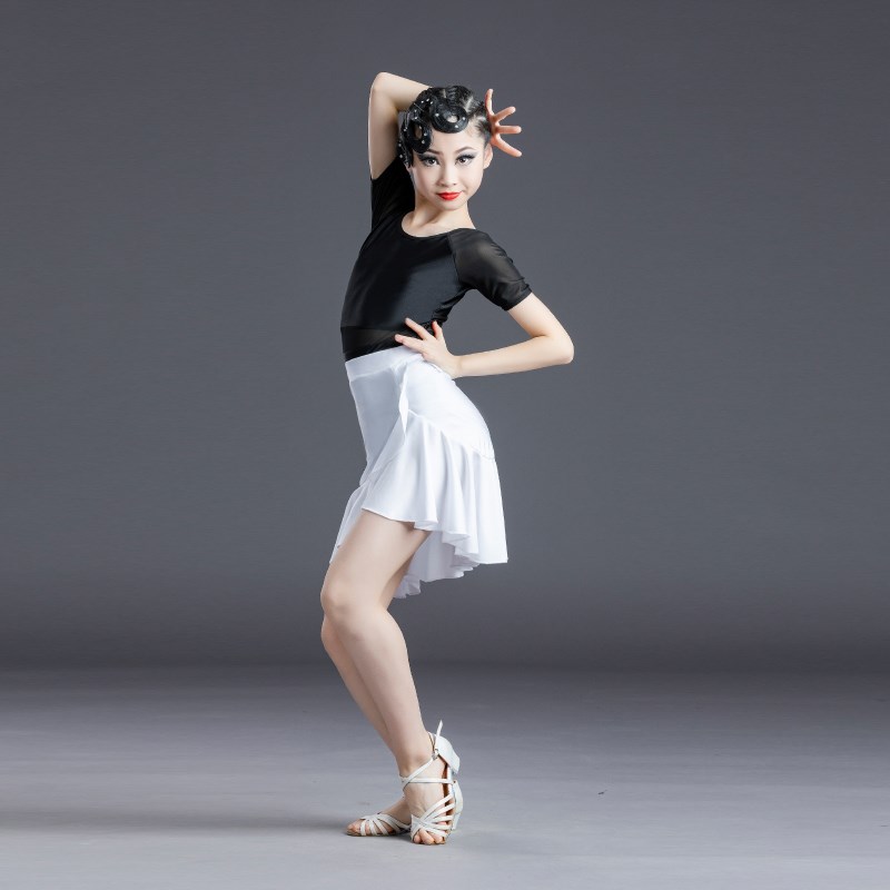 极速儿童拉丁舞练功服女童短袖网纱E拉丁舞蹈裙少儿分体比赛演出