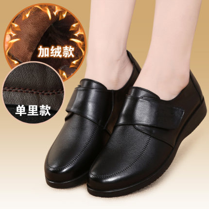 2026春秋季妈妈鞋单鞋真皮软底女舒适平底防滑加绒皮鞋中老年女鞋