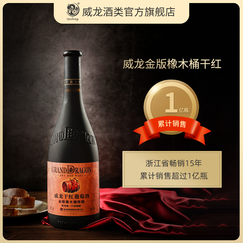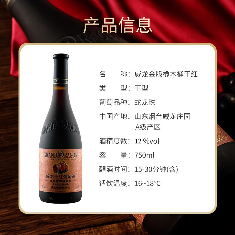威龙金版橡木桶陈酿干红葡萄酒21年树龄老藤蛇龙珠红酒烟台整箱