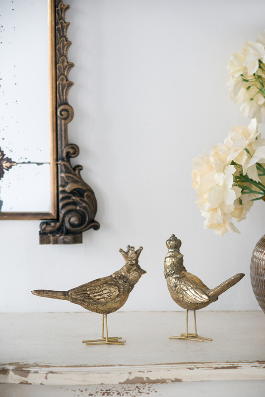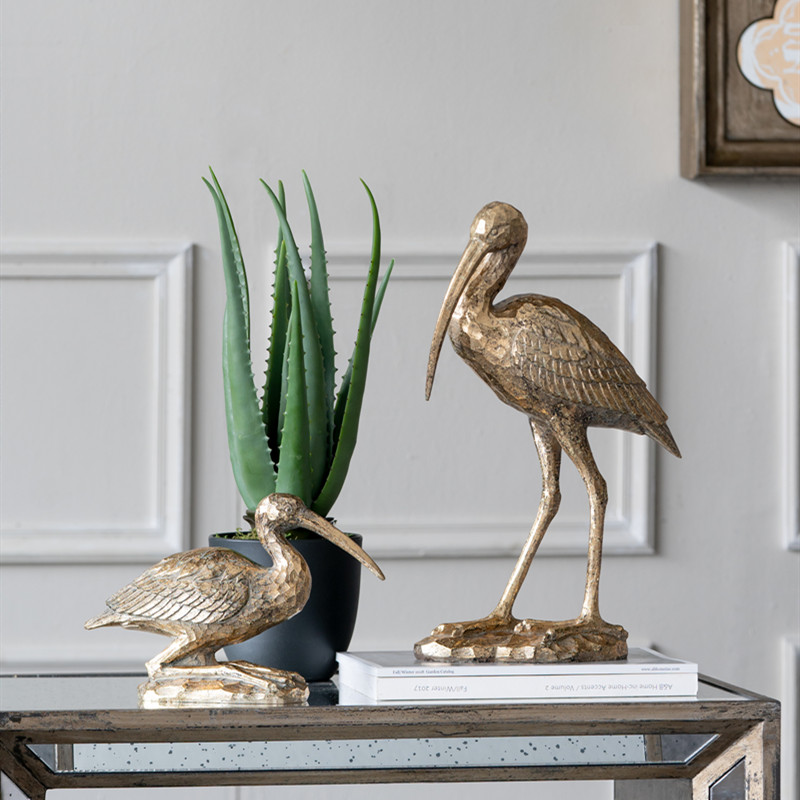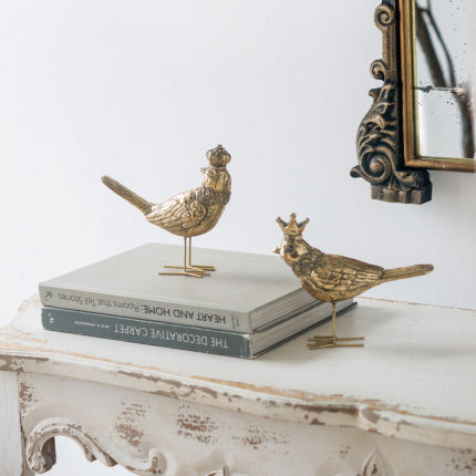 Powkhome复古金色创意情侣小鸟桌面摆件动物雕塑家居装饰工艺品